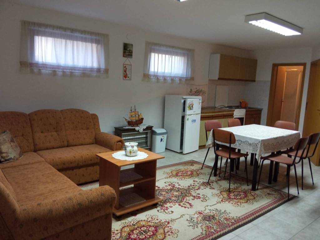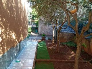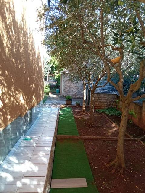 Pula - Monvidal, prodajemo svijetao i prostran 3-sobni stan površine 128m2 u prizemlju etažirane zgrade smještene na kraju slijepe i mirne ulice. Stan se sastoji od dnevnog boravka, blagovaonice, kuhinje i smočnice, 2 spavaće sobe ( mogućnost 3. spavaće sobe kao na tlocrtu ), kupaonice s toaletom i tuš kabinom, odvojenog WC-a, velikog hodnika i predsoblja, zatvorenog predprostora i velike terase na kojoj je moguće boraviti tijekom cijele godine. Dnevni boravak, blagovaonica i terasa su zapadne orijentacije, dvije spavaće sobe istočne, a eventualana treća spavaća soba bila bi južne orijentacije. U stanu su ugrađeni prvoklasni laminati i pločice, a grijanje je na struju ( dva nova klima uređaja od kojih je jedan u dnevnom boravku, a drugi u mirnom spavaćem dijelu stana ). Uz ovaj stan na istom vlasničkom listu prodaje se 2-sobni stan 46m2 u podrumu povezan stepeništem sa stanom u prizemlju i prodaju se zajedno po istaknutoj cijeni. Taj stan u prizemlju ima vlastiti ulaz i namješten je kao što je vidljivo na slikama, te je pogodan za dodatan prihod od najma. Zgrada je izgrađena 2001. godine te ima dvostruku fasadu ( cementnu + DEMIT stiropornu fasadu debljine 5cm ). Smještaj zgrade je na odličnoj lokaciji u blizini svih dnevno potrebnih sadržaja ( centar grada i Arena su udaljeni samo 12 minuta pješke ). Blizina obilaznice omogućuje brz dolazak do mora i svih dijelova Pule. Zgrada i stanovi su redovito i detaljno održavani pa je useljenje moguće bez dodatnih ulaganja i radova. Ako tražite komfornu, prostranu, prozračnu nekretninu smještenu u mirnom okruženju na lokaciji u blizini centra onda je to odlična prilika za vas. Zgrada posjeduje Energetski certifikat A. Stanovima pripada dio okućnice označen zelenom bojom. Vlasnici su ishodovali sve dozvole ( provedeno uredno etažno vlasništvo s određenim omjerima i uporabna dozvola ) pa je stanove osim gotovinom moguće kupiti i kreditima banaka. Osim opisanih stanova na prodaju je cijela zgrada s ukupno još dva stana smještena na 1. i na 2. katu. U tom slučaju cijena je po dogovoru. KUPCI NE PLAĆAJU PROVIZIJU AGENCIJI!!!