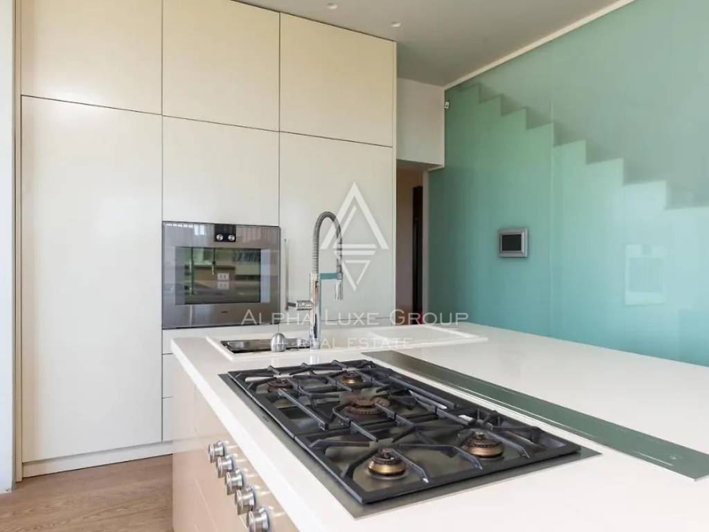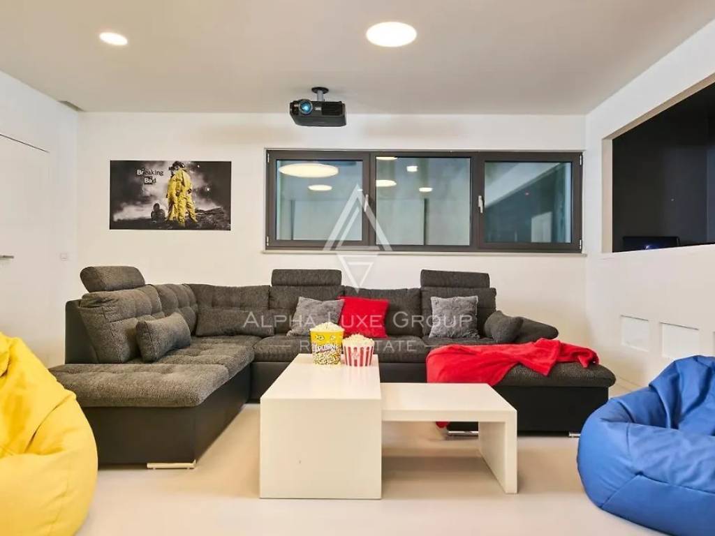 Constructed with premium materials and fitted with advanced home technology, the villa includes underfloor heating, a central smart-home system for lighting and climate control, high-end appliances, custom-made furniture, a water purification system, and a private home cinema. Three panoramic terraces surround the property, offering ideal areas for relaxing, dining, or admiring peaceful views of olive groves and the Adriatic Sea.