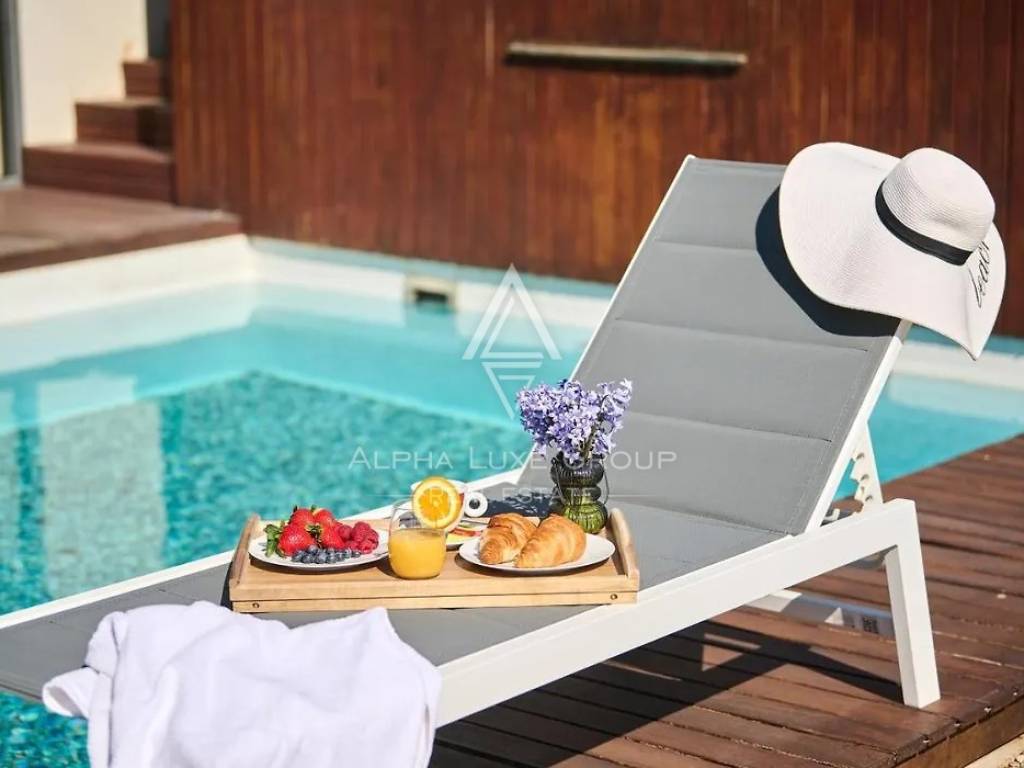 Set on an elevated and sunlit position just 400 meters from the coast, this refined villa offers complete privacy, unobstructed views of the sea and Mediterranean greenery, and an exceptional level of comfort. Designed to enhance natural light and outdoor living, the property boasts spacious terraces, landscaped gardens, and carefully selected details that create a warm and elegant ambiance.