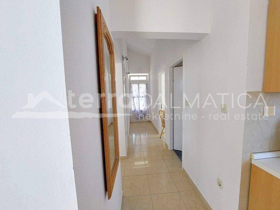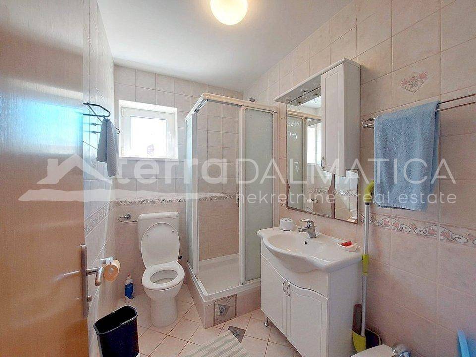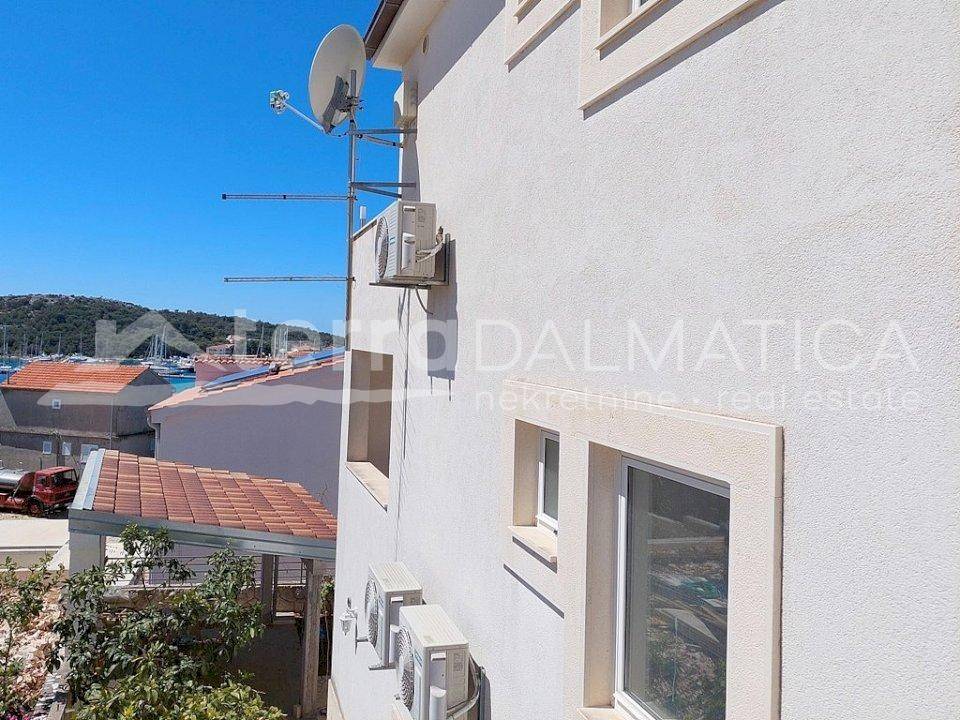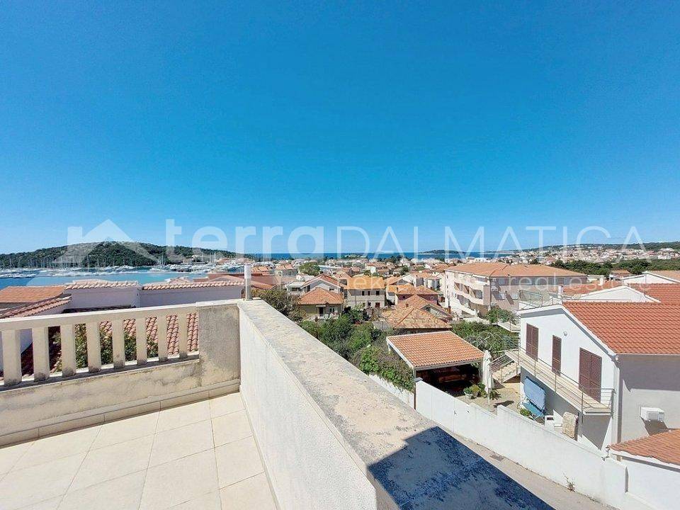 A beautiful family house on a hill in the center of Rogoznica is for sale. It is located on an elevated terrain with a fantastic view of the Rogoznica coast, marina and sea. The environment is quiet, without noise, and from the center and all amenities is only a few minutes walk. The house has three floors and is designed on the principle of "apartment per floor", with a total living area of 262 m2. The gross area of the building is 335 m2, and the area of the building plot is 370 m2. All apartments are air conditioned, the house has a chimney and it is possible to heat with solid fuel. The apartment on the ground floor has three bedrooms and three bathrooms, so it is possible to divide it into smaller apartments, and the other two apartments on the higher floors have two bedrooms and one bathroom each. The house is fully furnished and is used for tourist rental. In the yard there is a parking lot for several cars. Rogoznica is a beautiful tourist place with a long coast located in the center of Dalmatia.
