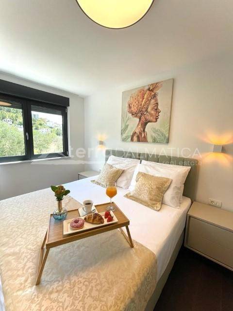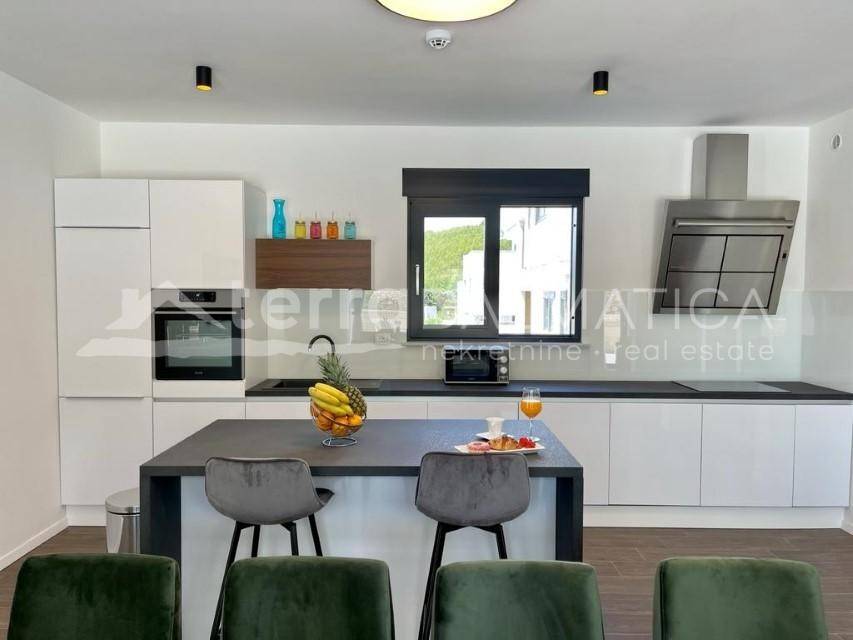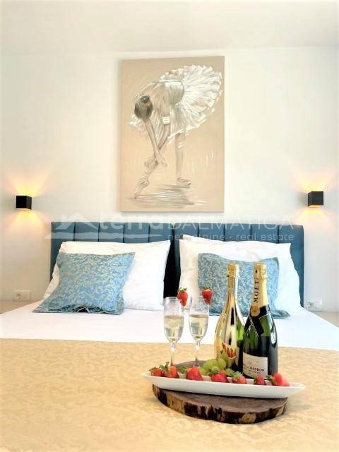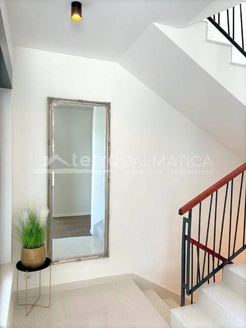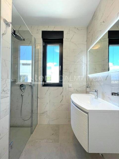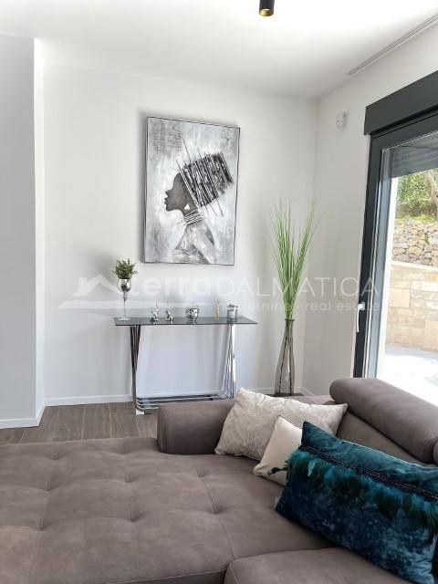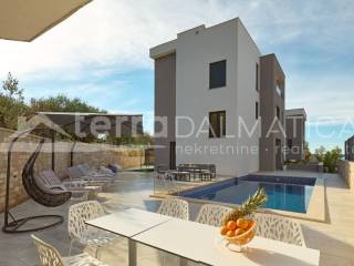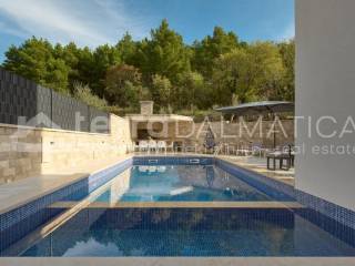 A unique villa with a private pool in the heart of Dalmatia is for sale. Iti s located in the vicinity of Split, in the Podstrana settlement. It is only a 15-minute drive from the center of Split, and the first beach is only 1 kilometer away. The tranquility of the location, which exudes a Mediterranean ambience, and at the same time the proximity to the urban city center is what makes this property extremely attractive for a stay throughout the calendar year. A direct view of the sea and the nearby archipelago makes this property a real pearl in the real estate offer. The villa covers a total of 420 m² of usable area built on a plot of 450 m². It extends over four floors, which are connected by an internal staircase and an elevator. The villa with a spacious terrace that surrounds her with a private pool has a total of 5 luxuriously furnished bedrooms, 8 bathrooms with a walk-in shower and a gym. On the first floor there is a modernly equipped and furnished kitchen, a dining room and, in extension, a spacious living room with a large U-shaped sofa and a flat-screen TV, which provides an ideal place for gathering and socializing. From the living room and the kitchen, through sliding glass walls, you can access the yard, which has interesting content for leisure, enjoyment and relaxation (lounge area, outdoor dining area, sun deck with deck chairs, fireplace, children's trampoline). Mediterranean plants were planted in the garden to make the house blend in with nature, and to give you additional privacy and the comfort of fragrant vegetation, and for a complete experience, an outdoor kitchen with a grill. The villa is fully air-conditioned, has a modern interior, and the highest quality materials were used in its construction. The villa is sold fully furnished with all facilities. Vila contains 4 garage spaces for parking vehicles. Split is a city with a long and rich tradition and history, with numerous sights. It is a city where you can enjoy top gastronomy and wines, find numerous cultural events such as film and theater festivals, exhibitions, top museums and concerts, a city that offers entertainment from numerous clubs and bars to street events and festivals. The property is located near other tourist places such as Trogir, Omis and Dugi Rat, and Split airport is 25 minutes away from the location. Contact our agent and arrange a tour of the property.