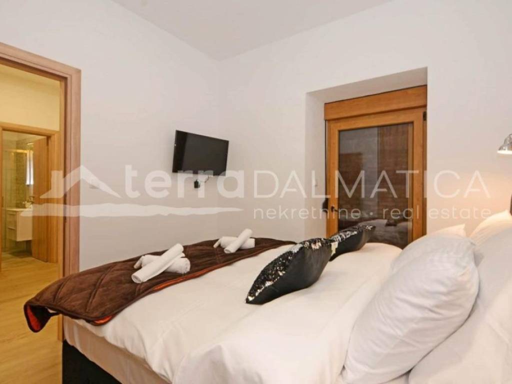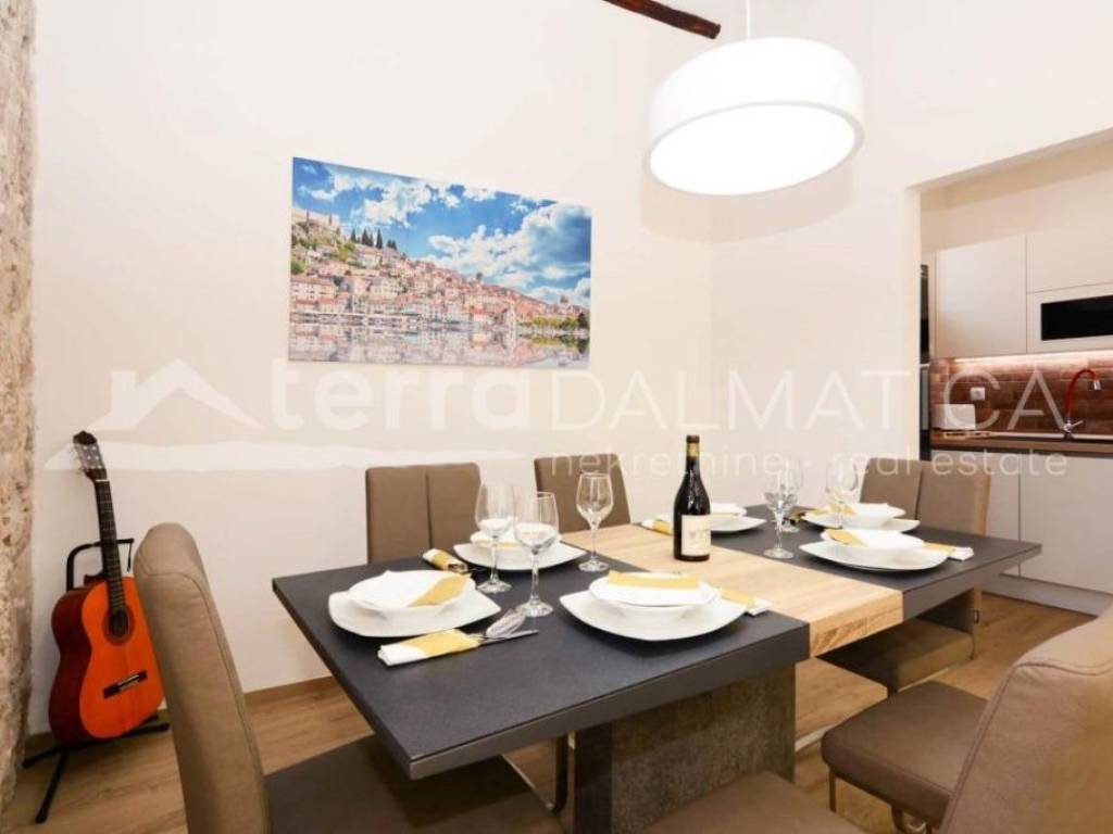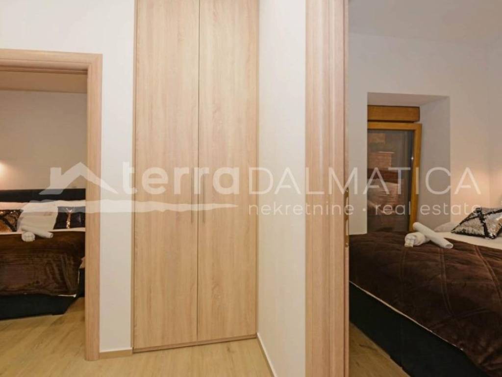 Large apartment for sale in the center of Sibenik with parking. It is located in the heart of Sibenik, on the ground floor of a beautiful stone building, just a minute's walk from the waterfront. This property stands out for its uniqueness - it comes with its own parking space in the courtyard of the building, providing you with comfort and convenience in the city center. The apartment currently functions as two separate apartments - one with two bedrooms and the other with one. However, it can easily be combined into a spacious and elegant unique space according to your needs. Both apartments are equipped with large floor air conditioners with inverters and wall panels for heating. The price includes fully furnished apartments, equipped with high-quality materials and furniture, which is confirmed by the complete renovation in 2019. This apartment also has an enviable past as a tourist rental, generating high annual income over the past 5 years. On various digital platforms, the apartments are rated as the best apartments in Sibenik according to the ratings of satisfied guests. Not only the property is transferred to the buyer, but also the entire business model and branding of the apartment, making this investment a perfect opportunity for those who want not only a quality home but also a successful tourism business. Contact our agent and schedule your tour.