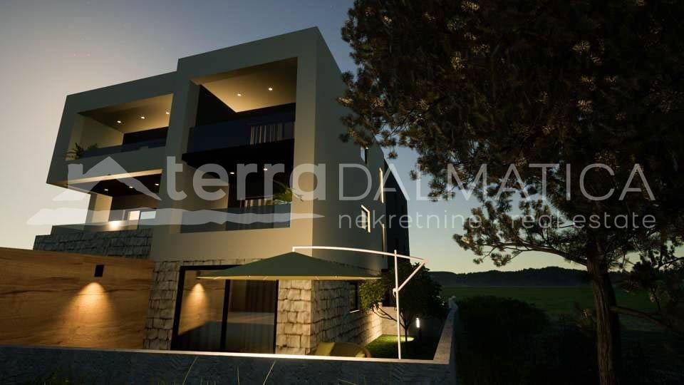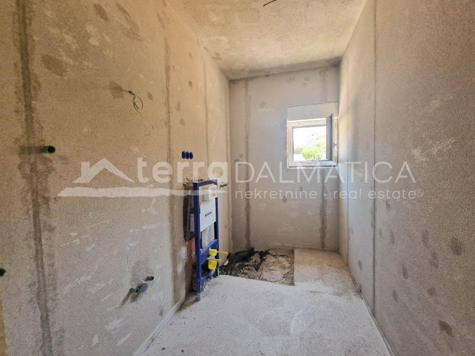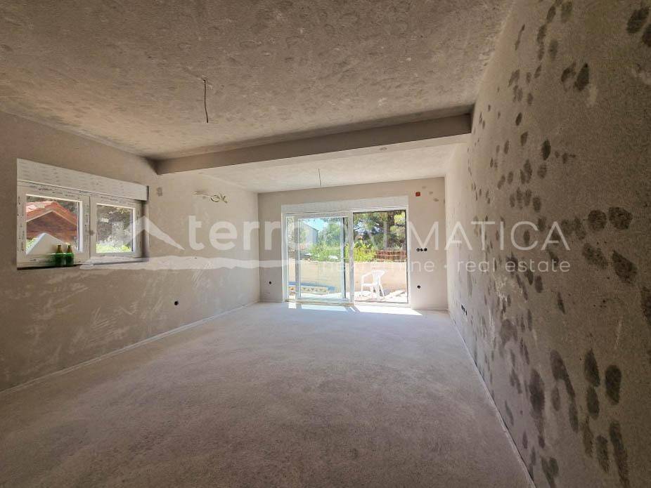 An apartment is for sale on the ground floor of a building currently under construction, with completion expected by the end of 2024. This apartment is ideal for those seeking a modern and functional space close to the beach, with the option to customize according to personal needs. The apartment consists of an entrance, kitchen, dining room, and open-concept living room, which leads to a terrace that extends into a garden. The garden offers the possibility to install a jacuzzi or other amenities, providing additional space for relaxation and outdoor enjoyment. The rest of the apartment includes two comfortable bedrooms and a modern bathroom. The investor, with many years of construction experience, offers the opportunity to view already completed projects, allowing buyers to see the quality and standards of construction. The beach is just a 2-3 minute walk away, providing quick and easy access to the sea. This apartment offers the perfect combination of comfort, convenience, and proximity to the beach, making it an ideal choice for a family home or vacation residence. Zaboric is a charming small town located on the Adriatic coast, near Sibenik. It is known for its clean beaches and crystal-clear sea, making it an ideal place for rest and relaxation. Zaboric offers a peaceful environment with natural beauty, perfect for those seeking an escape from the city hustle. Additionally, the proximity to Sibenik provides easy access to urban amenities and cultural attractions. For more information and to arrange a viewing, feel free to contact us. Note: Renderings are used in the ad.