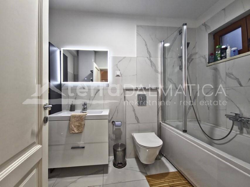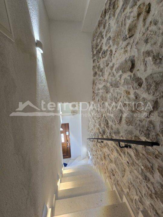 A beautifully decorated stone house for sale, located in the very center of Vodice. The excellent location of this house provides easy access to all essential amenities, including cafes, shops, and restaurants. With a combination of modern and traditional design, this house exudes a warm and inviting atmosphere, creating a true sense of home. From the entrance, stairs lead to a study and wardrobe, which can easily be converted into a bedroom. There is also another bedroom with a private bathroom. The staircase continues to the second floor, where the shared living spaces are located: a spacious living room on one side and a kitchen with a dining area on the other. A bathroom is also situated on this floor. The third floor, or attic, offers a master bedroom that is spacious, bright, and airy, with plenty of natural light. This room has its own en suite bathroom. From the bedroom, there is access to a 25m² rooftop terrace, perfect for enjoying a morning coffee or evening gatherings with friends. The terrace offers a spectacular panoramic view of Vodice, the sea, and the surrounding islands. Its generous size allows future owners to customize it to their liking, whether they wish to create a lounge area, a garden space, or even a yoga and relaxation zone. The house also includes two parking spaces, located just a few minutes' walk away. One of the unique features of this three-story house is the 45 m² commercial space on the ground floor, which can be used for various business activities and provide passive income for the future owner. Vodice is a popular tourist destination known for its proximity to beaches, restaurants, cafes, and various cultural attractions. The perfect blend of traditional Dalmatian charm and modern amenities makes this location ideal for permanent residence or a weekend retreat. For more information or to schedule a viewing, contact us.