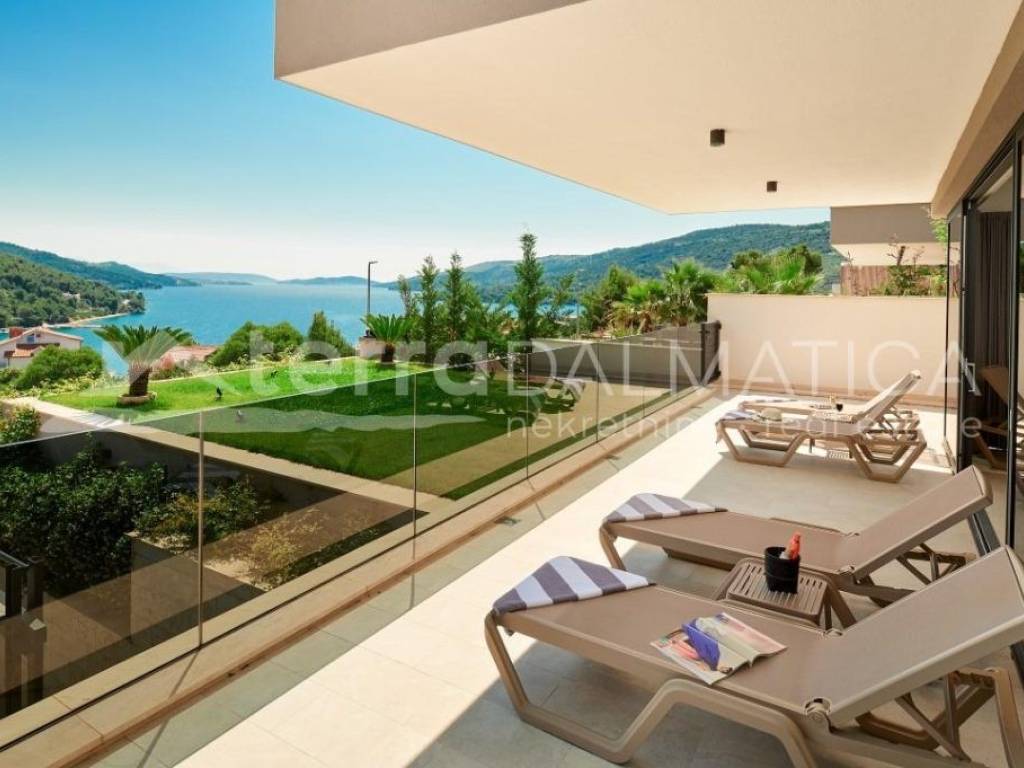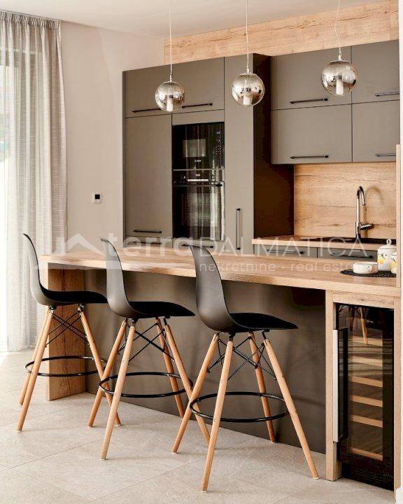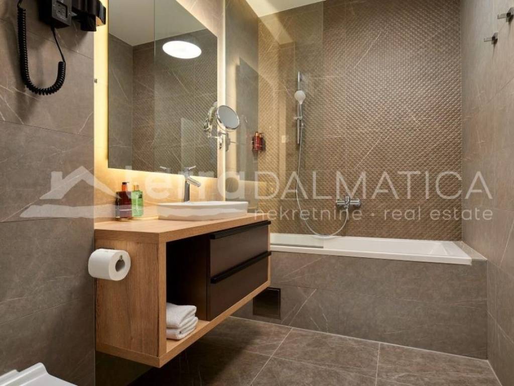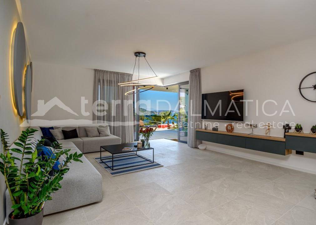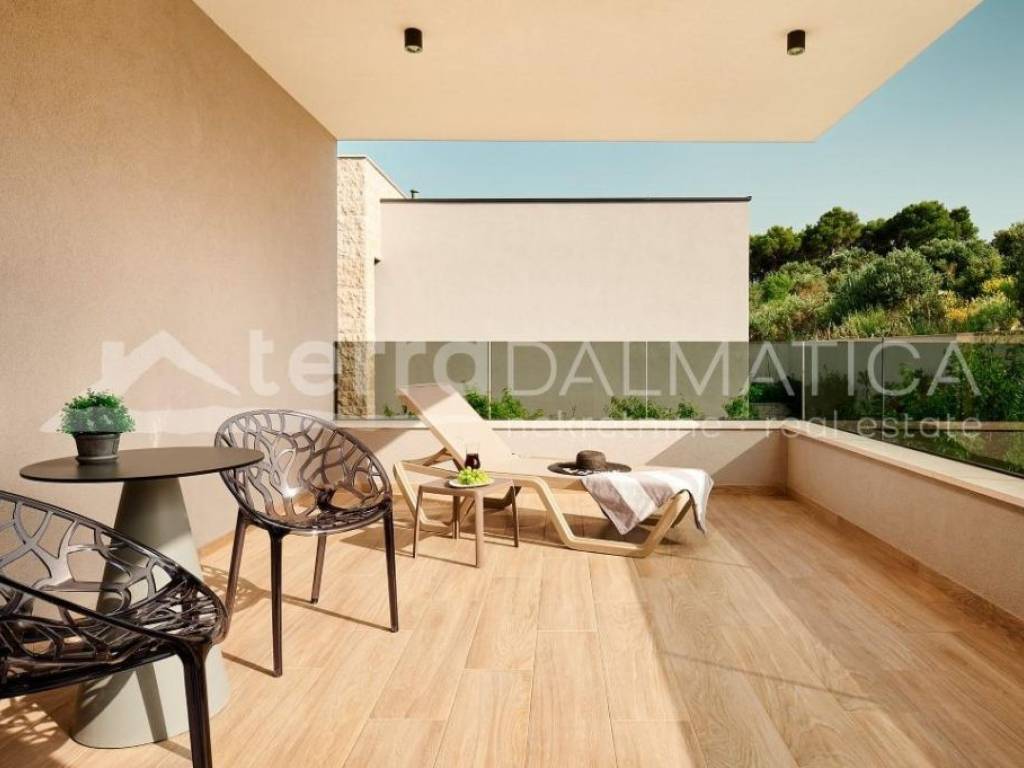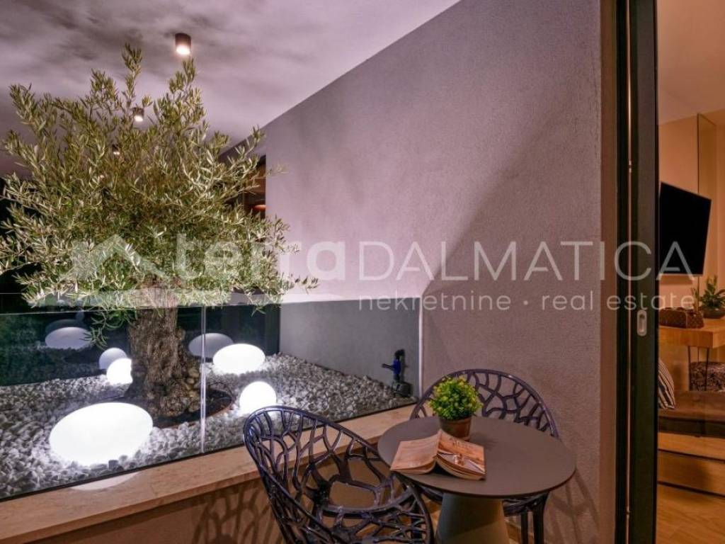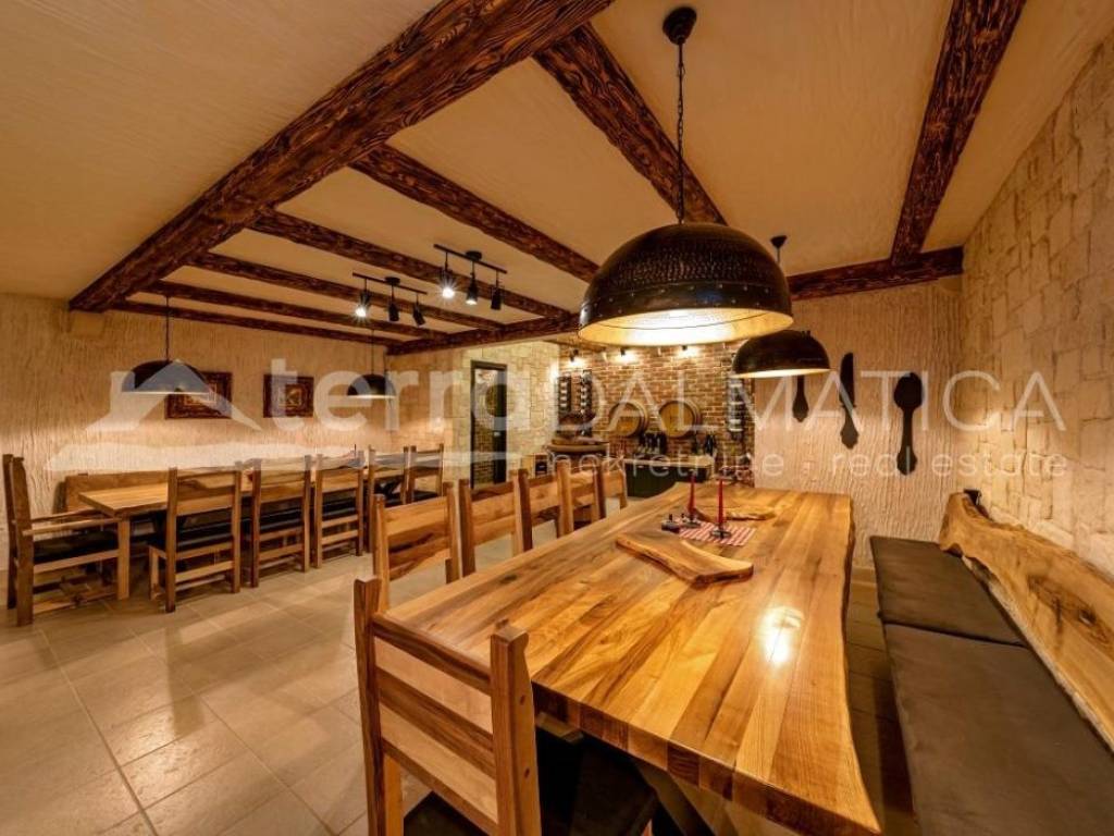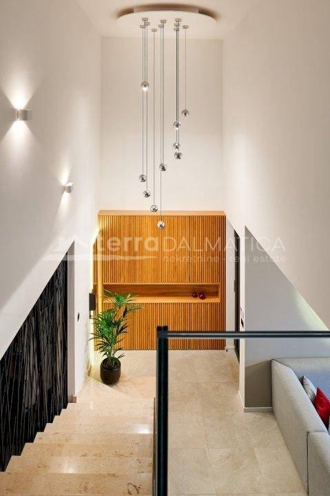 In Marina, a resort with three luxury villas, MARINA HILLS RESORT, is for sale. The resort consists of 3 villas with a total of 12 bedrooms, two outdoor and one indoor swimming pool. The villas are designed in such a way that on the ground floor there is a spacious living area, which on the front side continues to a terrace with a swimming pool and a sunbed, and on the side to a beautifully landscaped garden with a barbecue, a dining area and a children's playground. The terraces offer a beautiful panoramic view of the sea and the landscape. An elegantly decorated staircase leads to the first floor, where there are four bedrooms, each with its own bathroom and terrace, and almost each of them has a panoramic view of the sea. In the basement there are fully equipped gyms and a sauna, and in one villa there is also a children's playroom. All pools are heated, and in addition, floor heating has been installed around the two outdoor pools, so they can be used throughout the year. In two villas, there is an one apartment in the basement in each of them, while in the third there is a fully equipped tavern decorated with handmade wooden furniture, a professional kitchen, underfloor heating and a large fireplace. Next to the tavern, there is also a game room equipped with various entertainment facilities. Marina Hills Resort villas are a perfect combination of modern and spacious design, comfort and beautiful scenery. All three villas are designed as a whole by themselves, and the privacy of each of them is respected, both in terms of construction and horticultural design. Hundreds of plant seedlings have been planted in the resort, from palm trees and other ornamental shrubs and flowers to various fruit trees (cherries, plums, citrus fruits...). All green areas are equipped with automatic watering, and are taken care of by a licensed agronomist. In order for the comfort in the villas to be complete, top-quality equipment has been installed, among which we can single out Hitachi air conditioners that, in combination with the heat pump, provide a reliable system of cooling, underfloor heating and air heating as needed, video surveillance by the well-known manufacturer Saphire, an alarm system of the manufacturer DCS, electrical appliances manufactured by Bosch and Liebherr. A beautiful pebble beach is only 150 m away, and the bay where the Marina is located is quiet and peaceful, and protected from strong winds. Well-thought-out architecture, top-quality equipment and design, a combination of outdoor and indoor swimming pools and all other additional facilities are the trump cards for buying this luxury resort. If you are looking for an investment property, or a property that you would personally enjoy with an additional source of income, this is the right opportunity for you. Marina is a small, quiet fishing village located in a beautiful bay with clean sea and untouched nature. Nearby there are several beautiful bays known for their beautiful pebble and sandy beaches. In the Marina there are several shops, restaurants and cafes, as well as a small marina for boaters, and the beautiful town of Trogir is a 10-minute drive away. Contact our agent and schedule your tour.