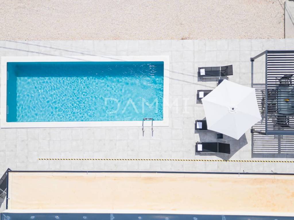The exterior is a story on its own. A private pool, a landscaped terrace, and an intimate garden create a true Mediterranean oasis — ideal for sunny days, dinners under the stars, or complete peace with a glass of wine. Everything is designed with an emphasis on privacy and carefree enjoyment.