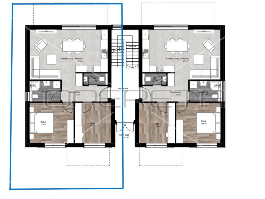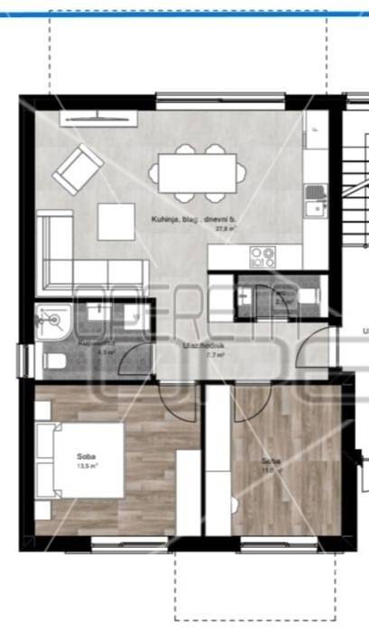 This charming apartment is located on the ground floor and will consist of a living room, dining room and kitchen according to the open space concept, two bedrooms, bathroom and toilet. From the living room and from one bedroom there is an exit directly to the terrace. Its total area is 70.97 m2. Heating of the apartment is provided by air conditioning and underfloor heating on electricity. Each apartment will have two parking spaces. The future owner of the apartment will be able to purchase part of the garden. The planned completion of construction is in the summer of 2025