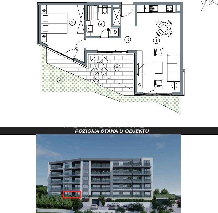 The third building in the center of Makarska is not just a new building to be constructed; it is an example of how the quality of life can be elevated to a higher level by combining design with a focus on comfort, which aligns with the urban planning and architectural solution of so-called "Green Building." The investor of the entire neighborhood, through conceptual solutions and main projects, is once again discovering a new dimension of living, with particular attention drawn to the interior, where the investor places emphasis on interior design.