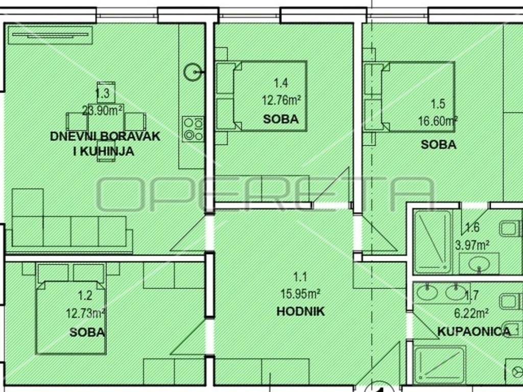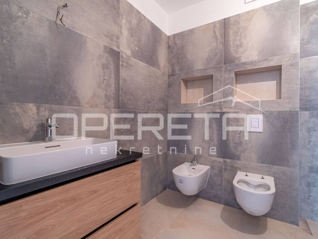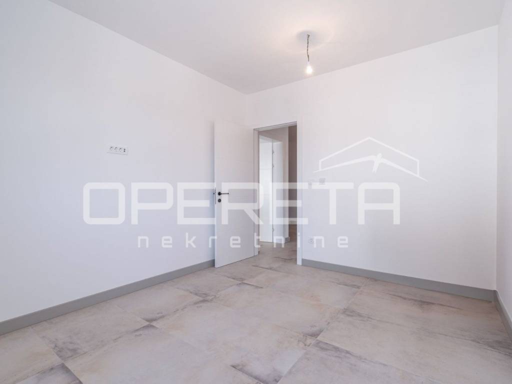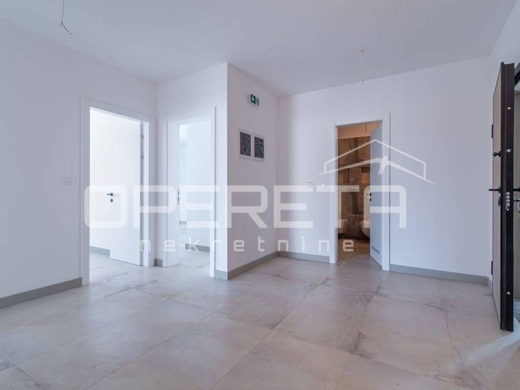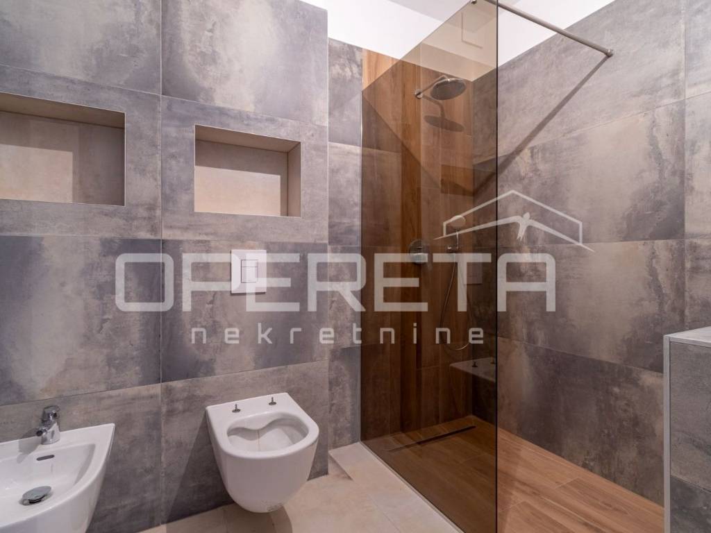 Istria, Banjole, just 320 m from the sea, a new apartment on the ground floor of a building is for sale. The apartment is characterized by top quality workmanship and materials. The net usable area of the apartment is 110 m2, while the net living area is 92.13 m2. The apartment has a 131 m2 garden with a swimming pool. The apartment is completed and ready to move in, and is being sold unfurnished. The apartment consists of a spacious hallway, three bedrooms (one en suite with bathroom), an additional bathroom and a living room with a kitchen and dining room with access to the outside - a covered terrace and a swimming pool. There is a Mitsubishi air conditioner in each room, and electric underfloor heating has been implemented throughout the entire apartment with thermostats for regulation in each room. The flooring in all rooms is top-quality Lamborghini ceramics. The apartment comes with two parking spaces and a storage room.
