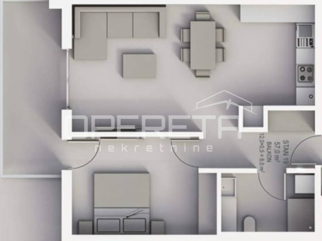 Stan oznake S19 nalazi se u na 2. katu stambene zgrade u izgradnji od ukupno 3 kata. Sastoji se od velikog "open space" dnevnog boravka s kuhinjom i blagovaonicom te izlazom na balkon, spavaće/radne sobe, kupaonice s wc-om, garderobe i ulaznog prostora.