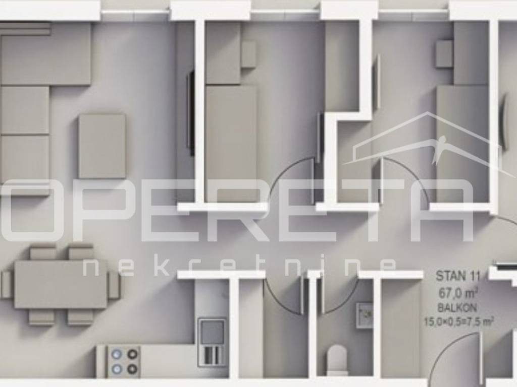Stan oznake S11 nalazi se na 1. katu stambene zgrade u izgradnji od ukupno 3 kata. Sastoji se od velikog "open space" dnevnog boravka s kuhinjom i blagovaonicom te izlazom na balkon, 3 spavaće/radne sobe, kupaonice s wc-om, spremišta, zasebnog wc-a, ulaznog prostora i hodnika.