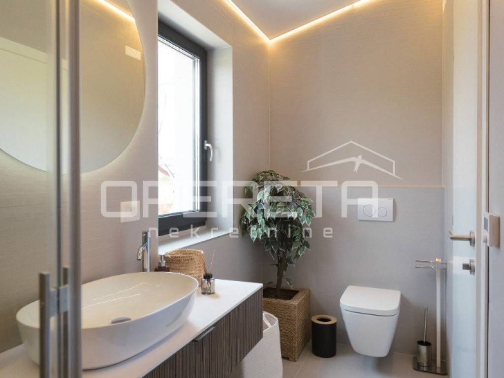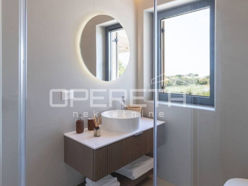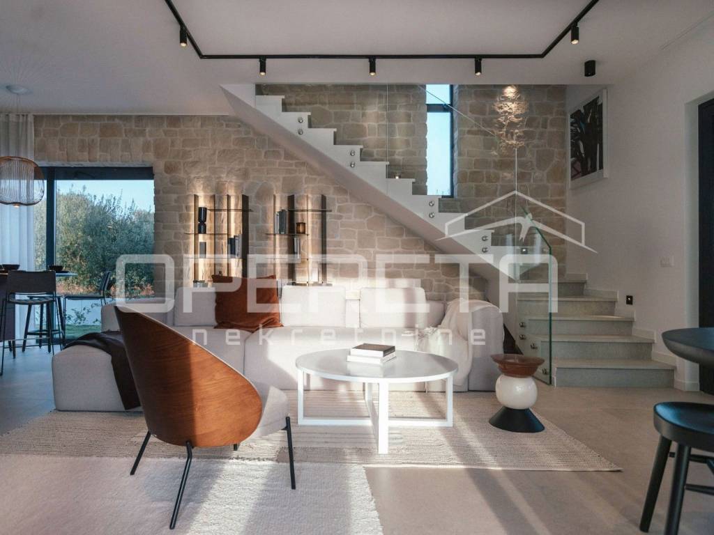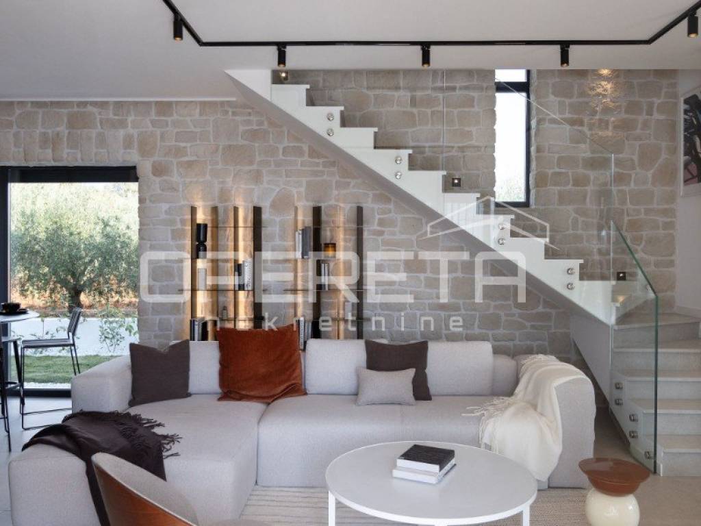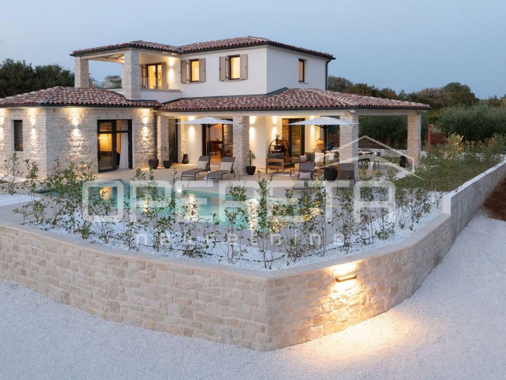 We offer a luxurious newly built house with a total area of 145 m, located in a quiet location just 2 km from the sea and in the immediate vicinity of Poreč. The house is spread over two floors and is located on a plot of 400 m, which includes a spacious yard with a heated swimming pool, a sunbathing area and a covered terrace, ideal for enjoying the outdoors.