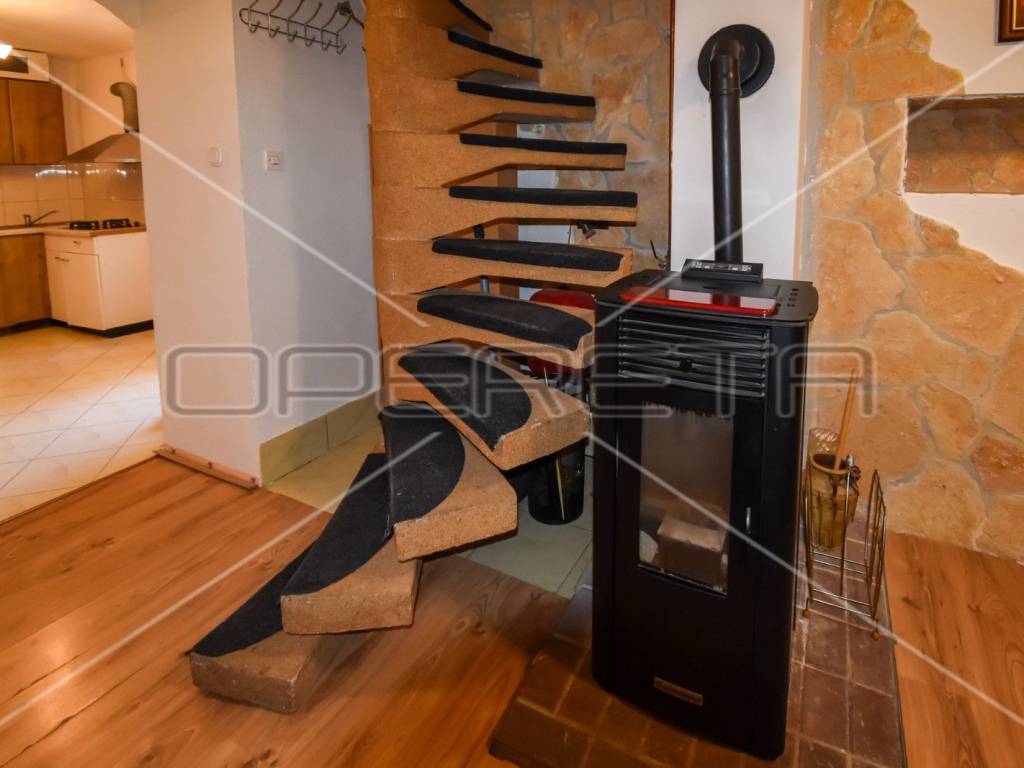 Due to its east-west orientation, all rooms in the house, particularly the bedrooms on the first floor and the high attic, as well as the terrace on the first floor, are bathed in daylight and sunshine. Heating is provided by a central pellet stove and air conditioning units that also cool the space during hot summer months.