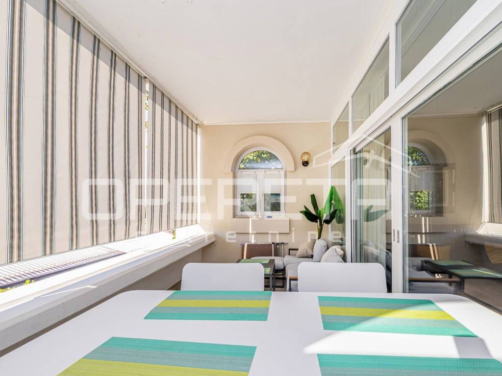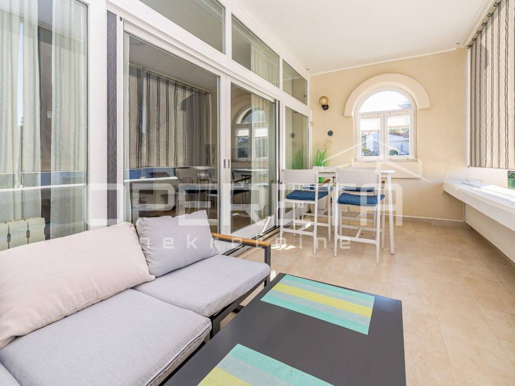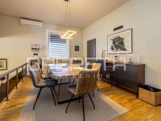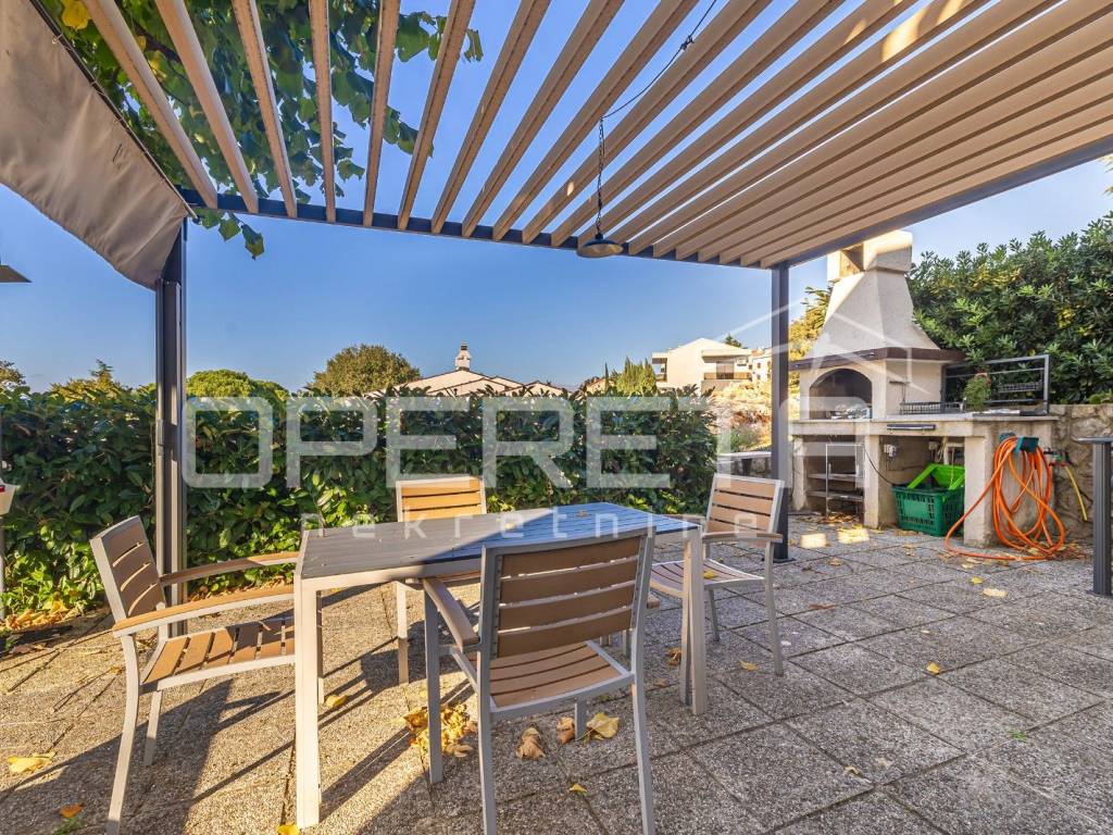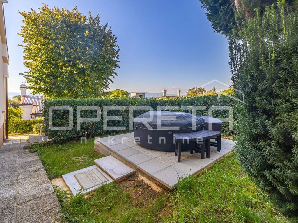 Designed by a renowned architect, the house blends harmoniously with its Mediterranean surroundings. An open view of the Kvarner Bay extends from almost every room. The functional layout includes a spacious living room with a fireplace and dining area, a fully equipped kitchen, an additional auxiliary kitchen, three bedrooms, two bathrooms, a separate guest toilet, a storage room and a large garage.