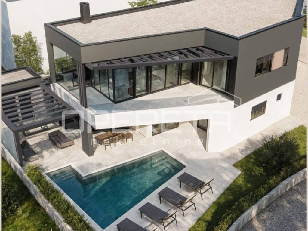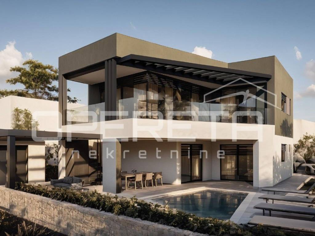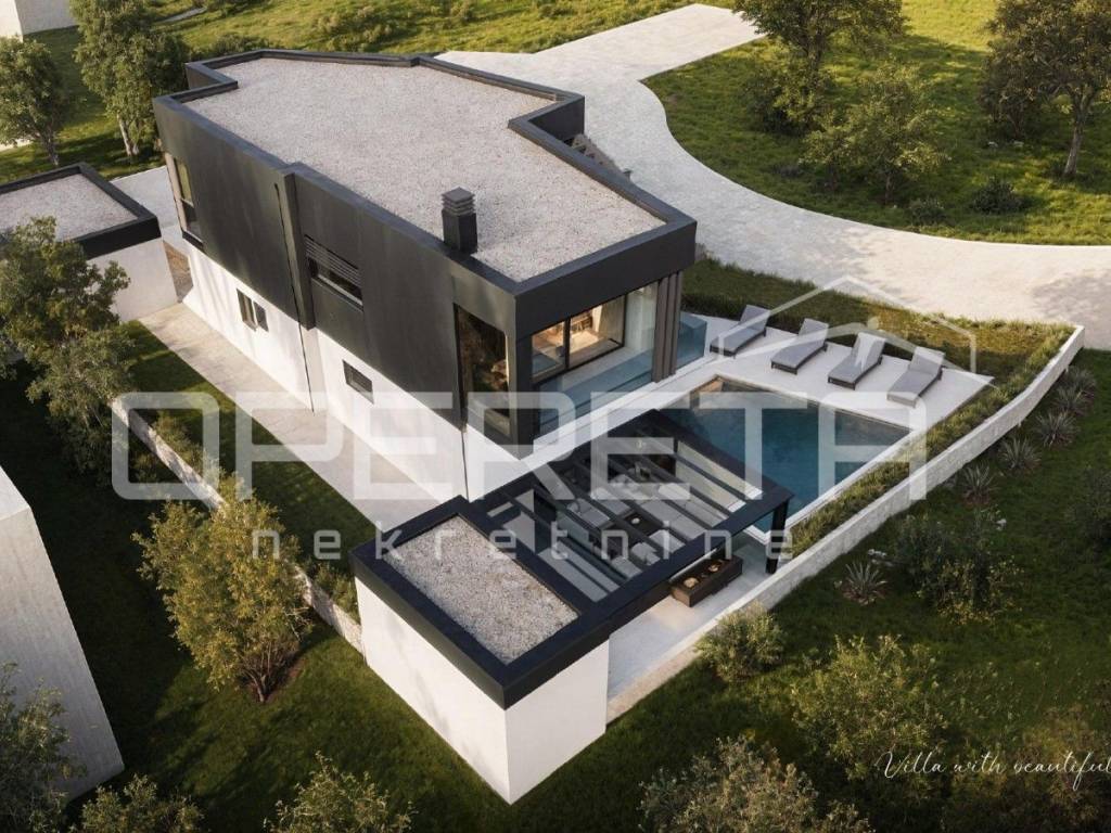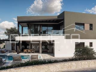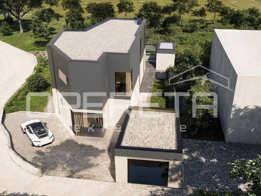 A beautiful modern villa is for sale located in a rare and extremely attractive location near the center of Vodnjan, on the very edge of the construction zone, surrounded by olive groves and untouched nature.