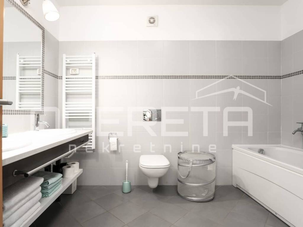 Built with first-class materials (Porotherm block brick, demit facade, premium tiles and Italian sanitary ware, high-quality PVC six-chamber external joinery with aluminum blinds). Heating and cooling are provided by Daikin inverter air conditioners. The house is sold fully furnished with custom-made furniture.