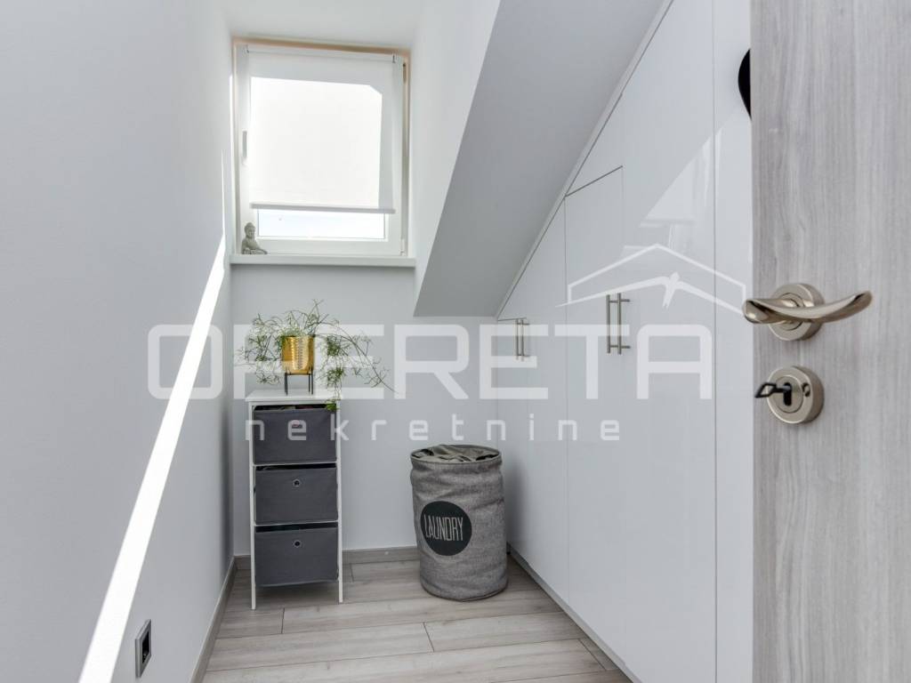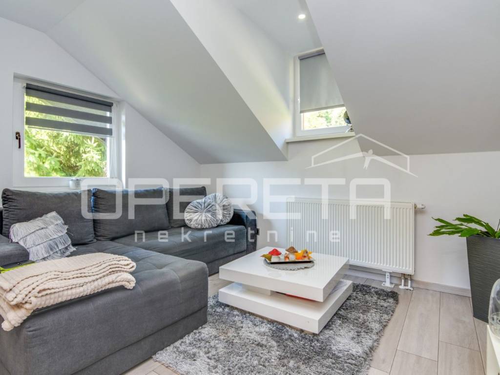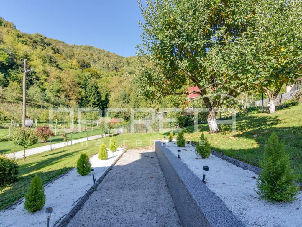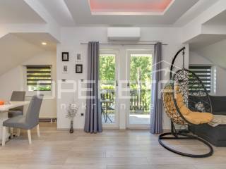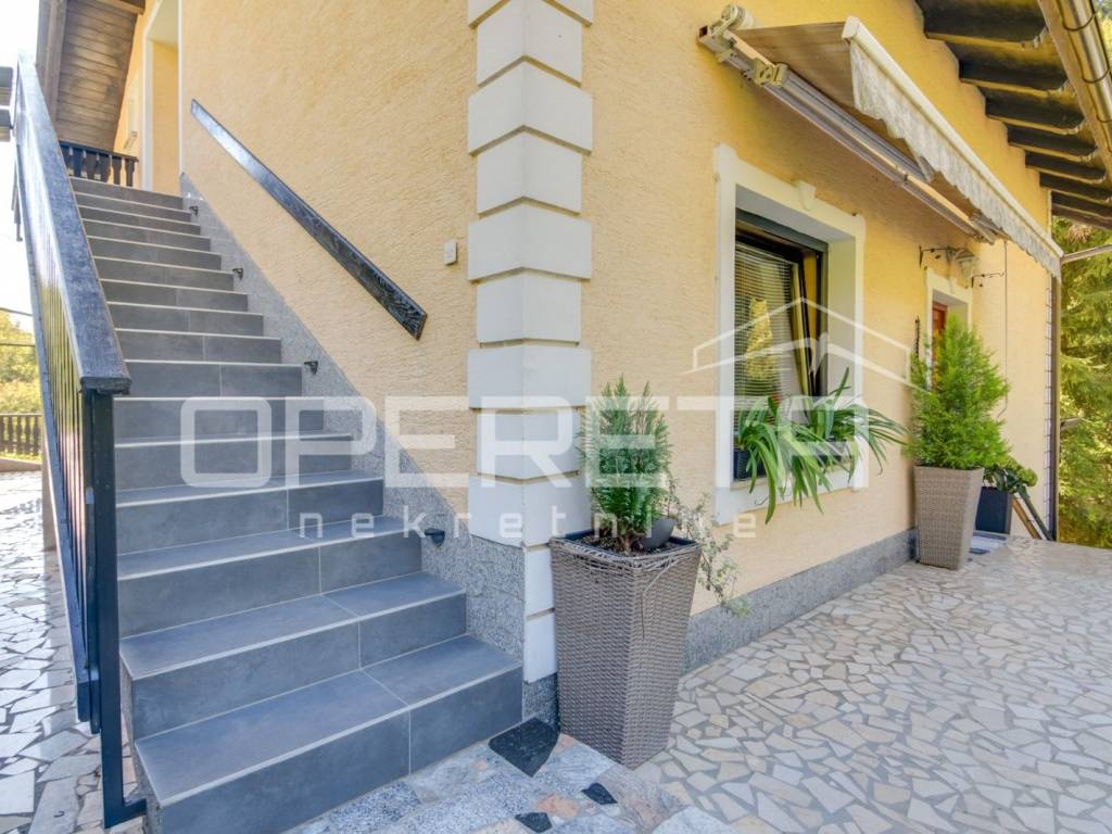 Samostojeća kvalitetno građena i opremljena katnica stambene površine od 180 m2 na blago uzvišenoj i ograđenoj parceli od 946 m2 u mirnoj ulici, odmaknutoj od glavne ceste i centra Klanjca svega 3 minute vožnje. Podijeljena u dvije zasebne samostalne funkcionalne jedinice. Orjentirana na sve 4 strane svijeta, sastoji se od suterenskog dijela ( u kojem su dvije garaže i spremište ), kata i potkrovlja. Na katu se nalazi prostran "open space" dnevni boravak s blagovaonicom i kuhinjom te izlazom na prostranu terasu s pogledom na zelenilo, 2 spavaće/radne sobe, kupaonica s wc-om i ulazni hodnik. Vanjsko natkriveno stubište povezuje ga s potkrovljem gdje se nalazi "open space" dnevni boravak s kuhinjom i blagovaonicom te izlazom na balkon, 2 spavaće sobe, tehnička prostorija, kupaonica i hodnik. Kuća je obnovljena tj. rekonstruirana 2015. g. kada je napravljena terasa, te obnovljen krov i fasada. U dvorištu uredno održavana hortikultura. Lijep položaj na uzvišenom terenu s pogledom na zelenilo, u blizini svih sadržaja potrebnih za kvalitetan život. Do centra Klanjca i svih potrebnih sadržaja 3 minute, do Zagreba 40 minuta vožnje. Preporuka!