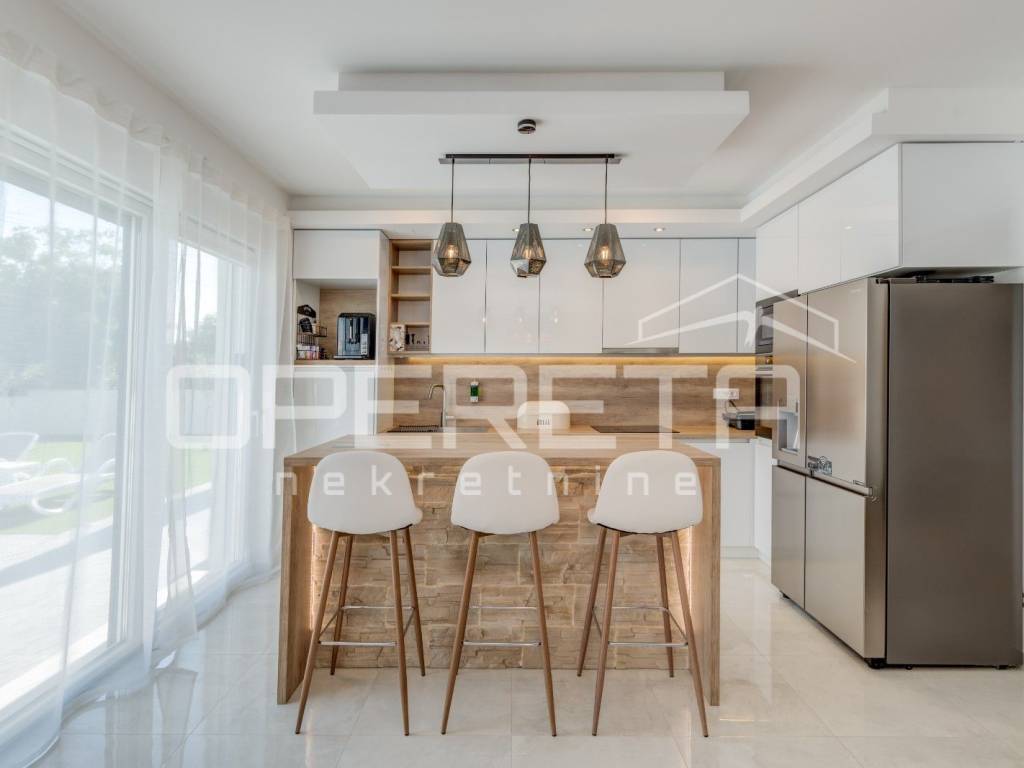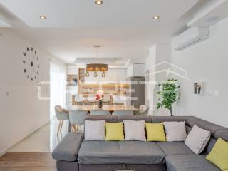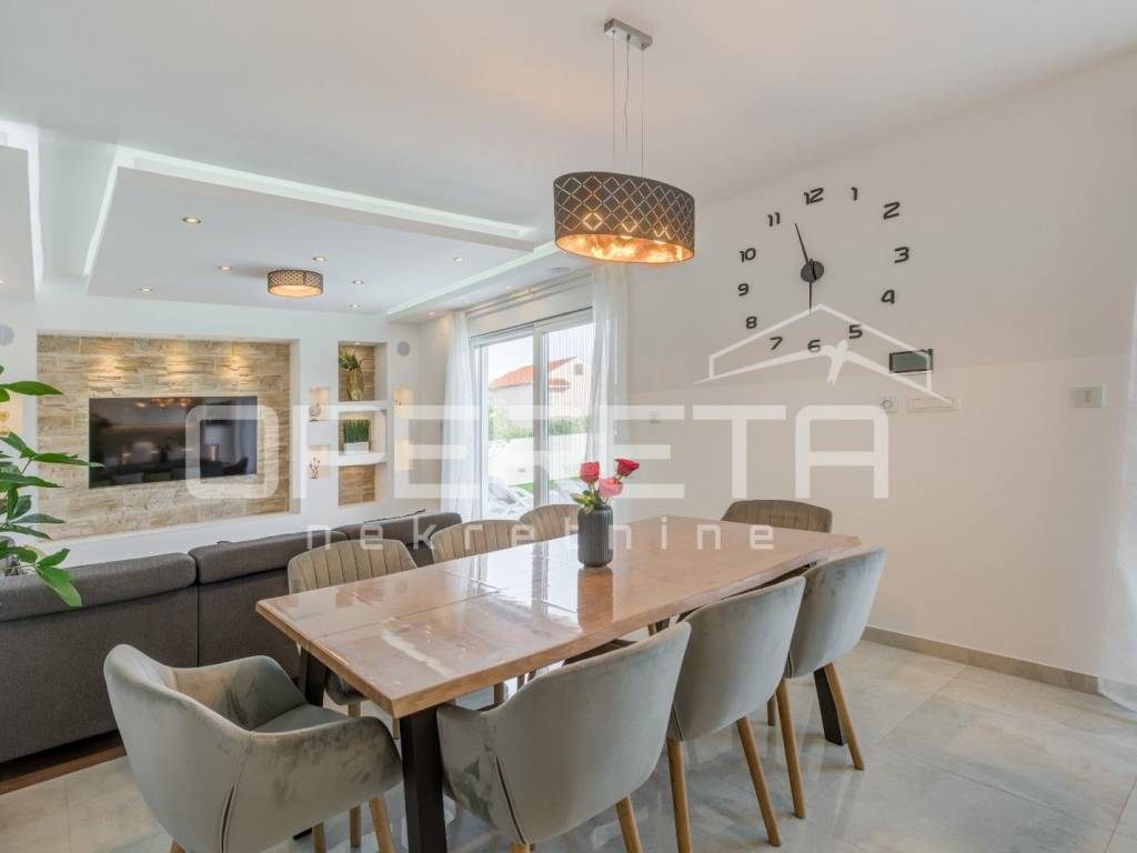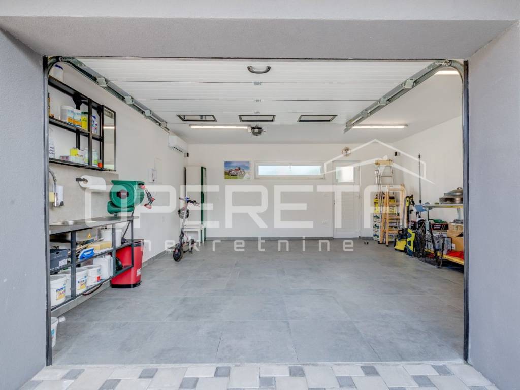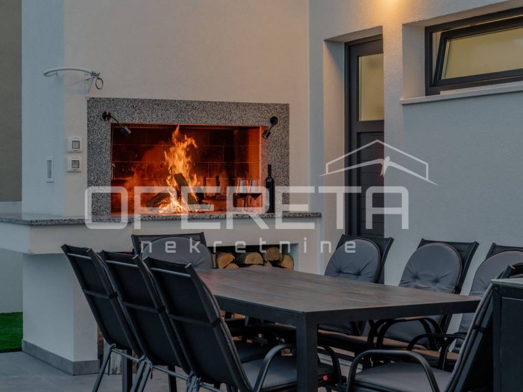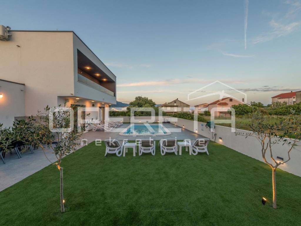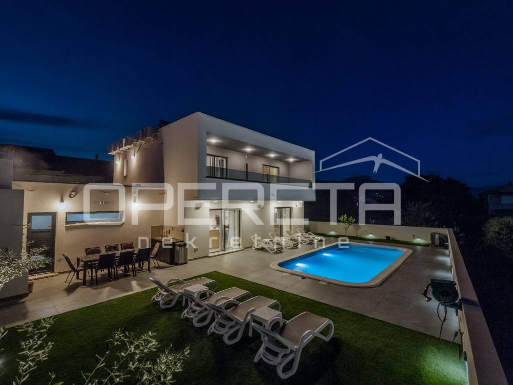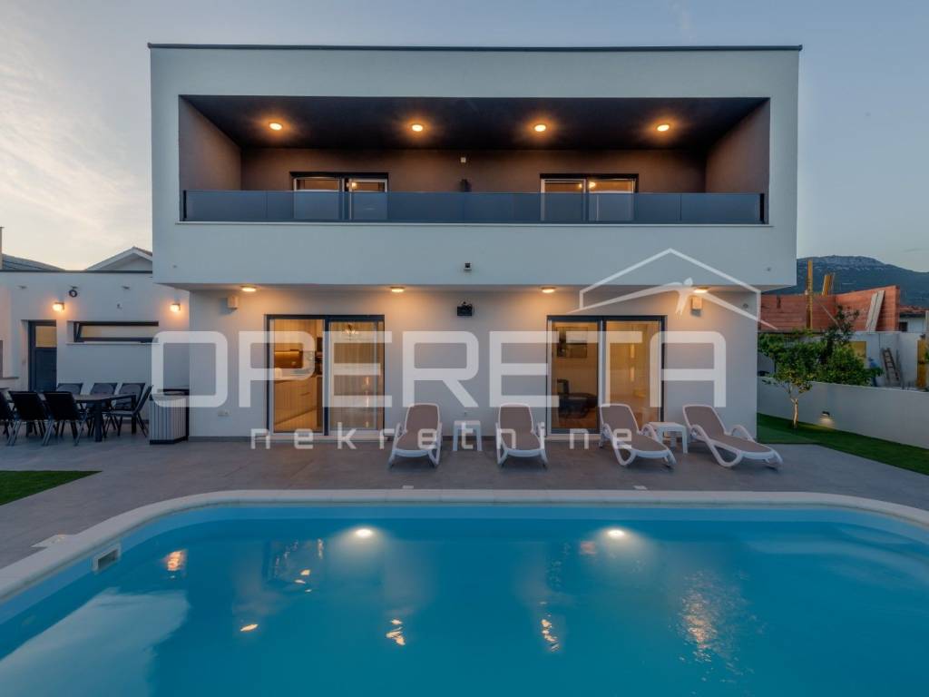This contemporary villa, completed in 2025 and designed as a family property that equally suits tourist use, is situated in Kaštel Novi on a 517 m2 plot.
