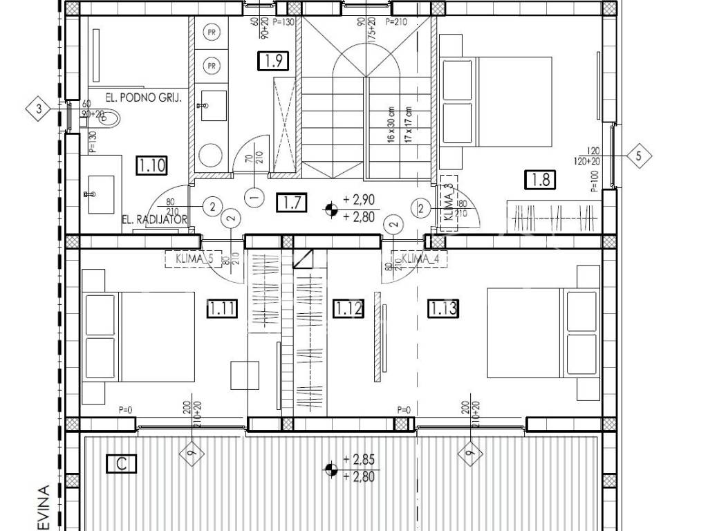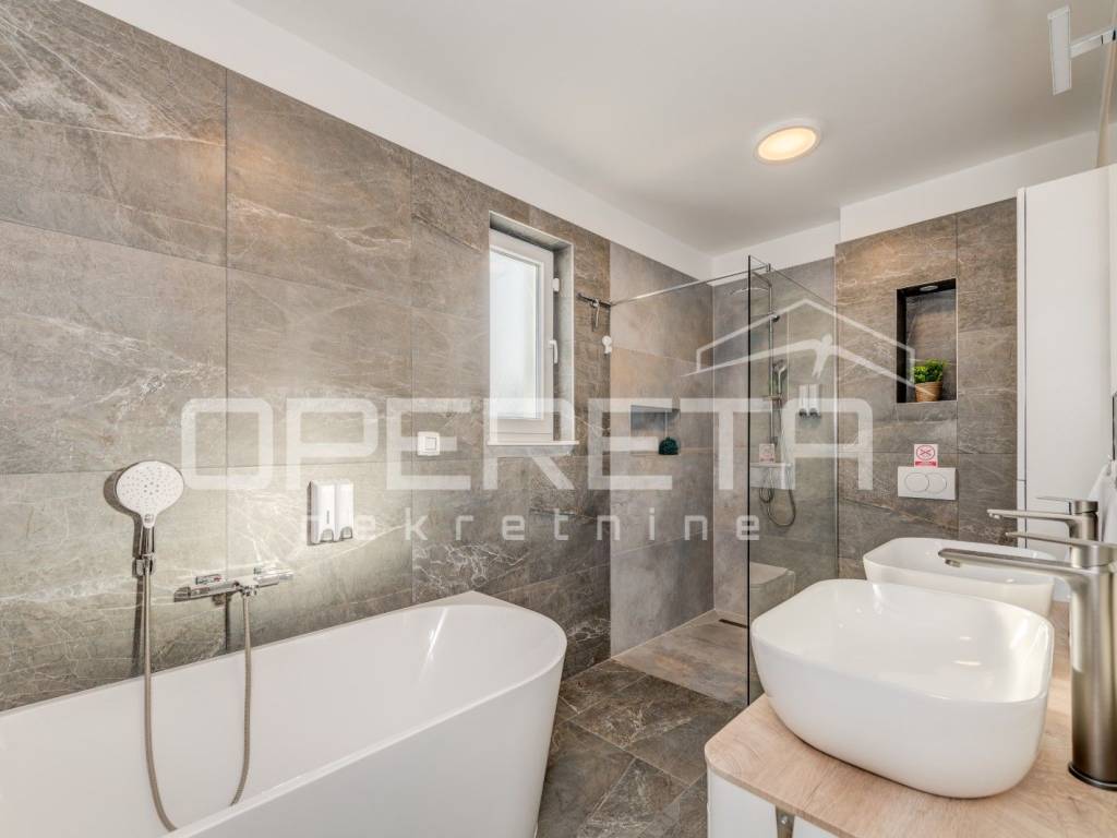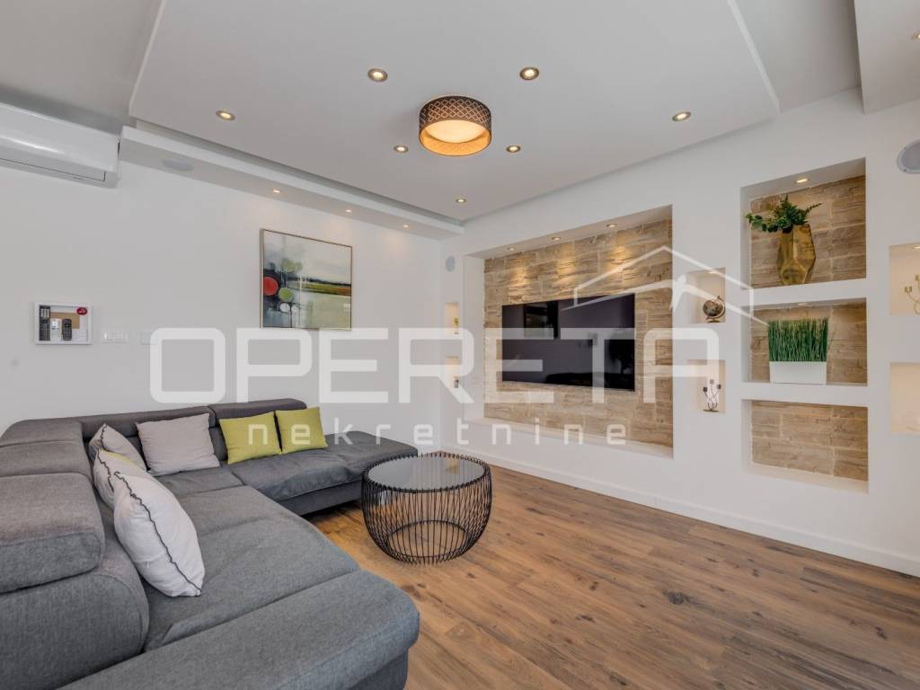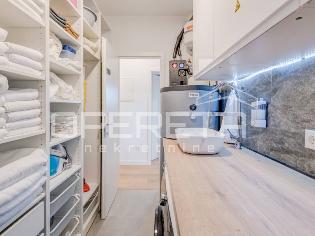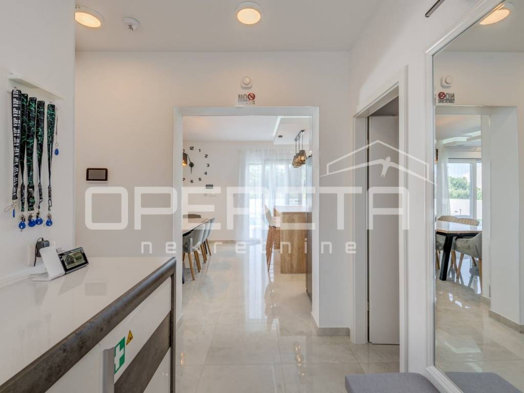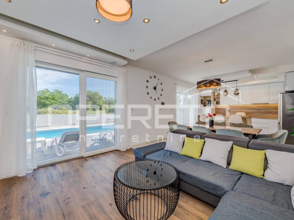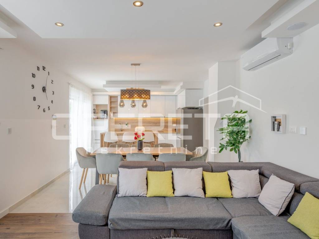 This contemporary villa, completed in 2025 and designed as a family property that equally suits tourist use, is situated in Kaštel Novi on a 517 m2 plot.
