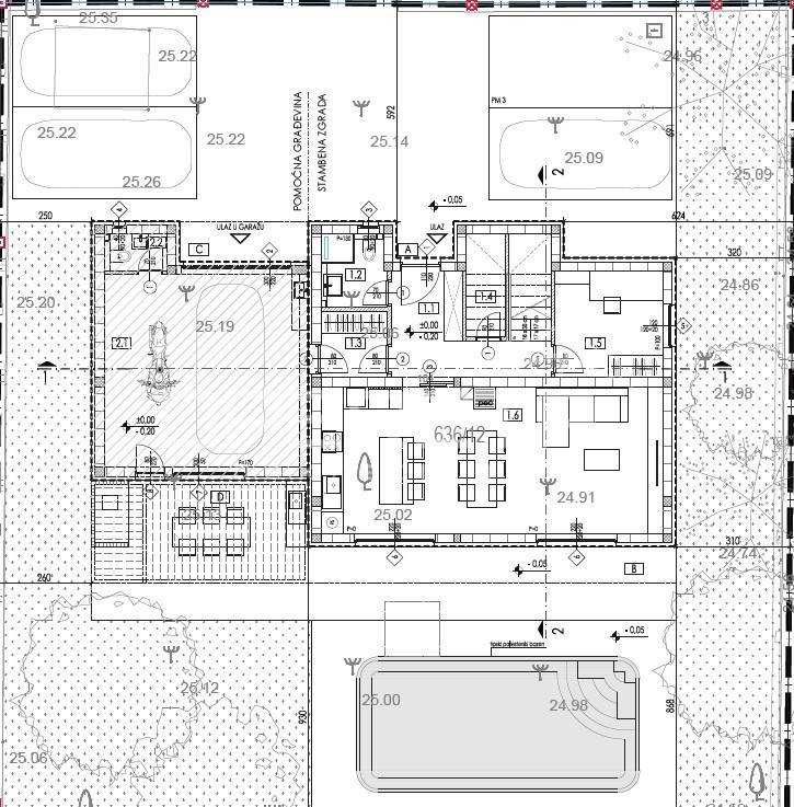 The front courtyard provides parking for 4 cars along with a garage for 2 vehicles. The garage is conceived as an auxiliary space with a guest toilet, integrated into the villa and open toward the backyard to make the summer kitchen and lounge area more comfortable.