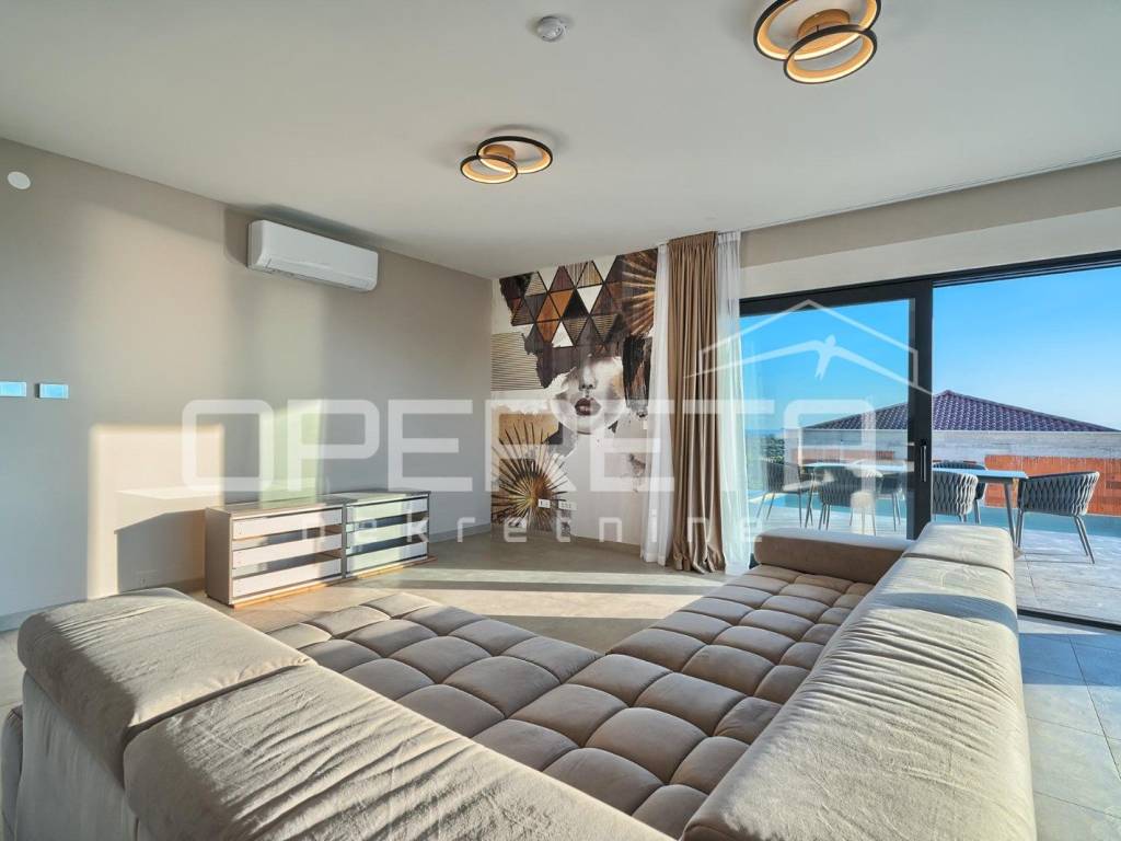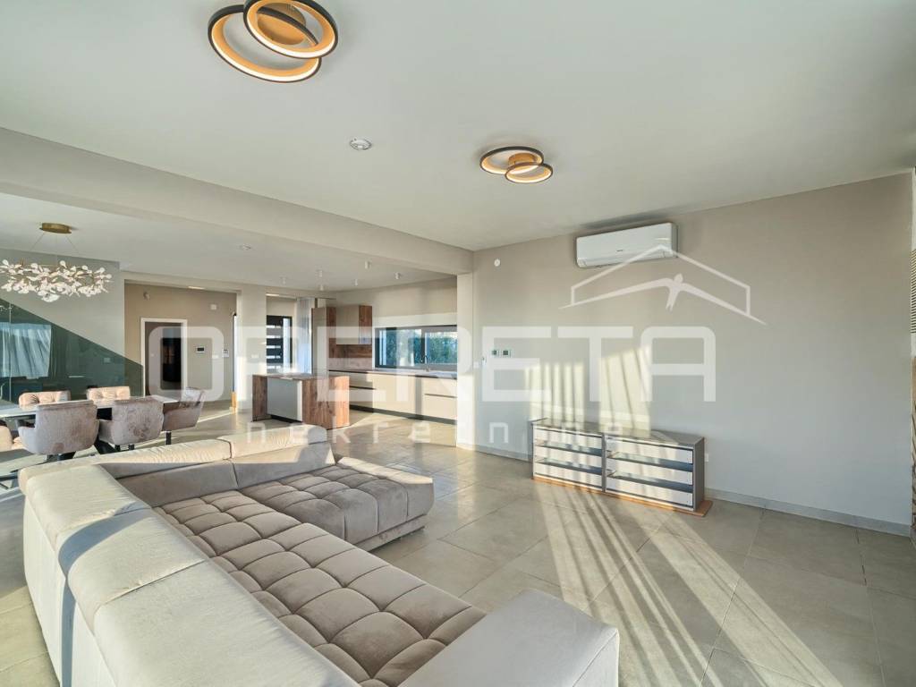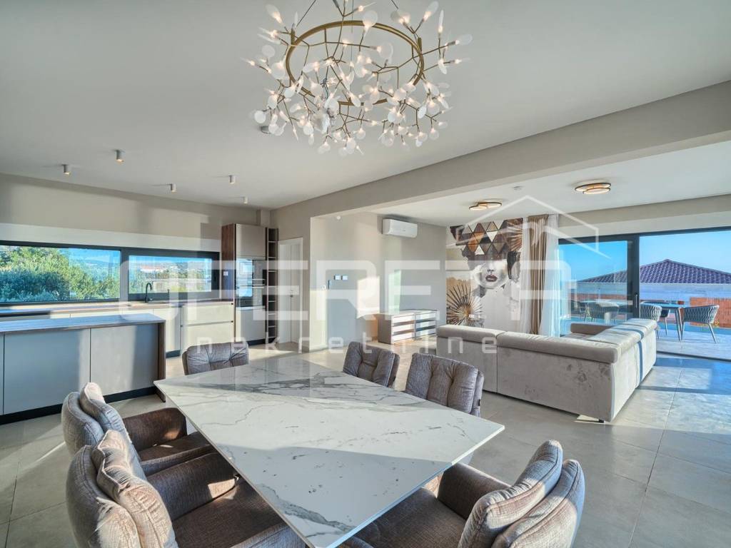 Set on a 600 m plot, the villa offers 225 m of living space spread over two thoughtfully designed floors. The ground floor combines functionality and comfort with an open-concept kitchen, dining area, and living room that opens to a large terrace. Theres also a summer kitchen, one bedroom, a bathroom, laundry room, storage, and an entrance hall.
