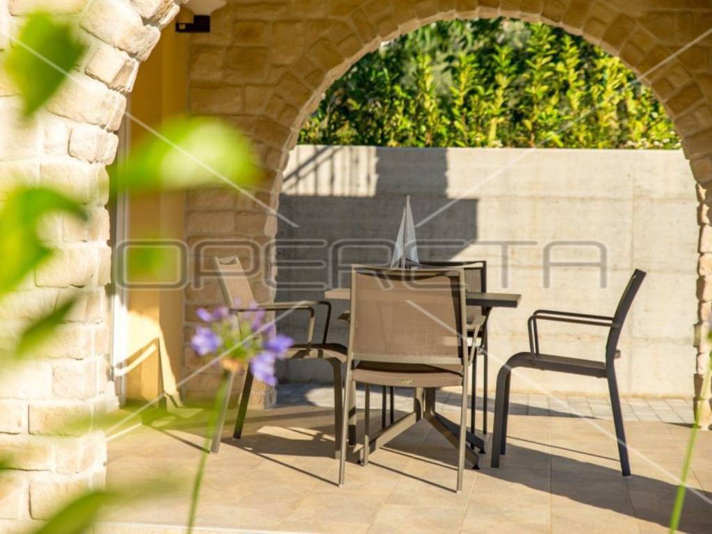 Kompleks je okružen prekrasnim mediteranskim vrtom. Vanjski prostor također se može pohvaliti prostranim bazenom od 60 m2, jacuzzijem, terasom za sunčanje s ležaljkama i dječjim igralištem.