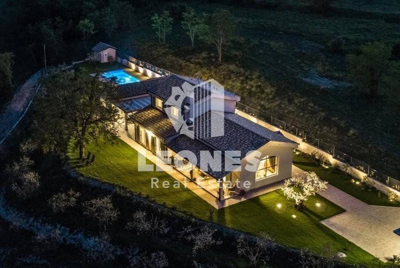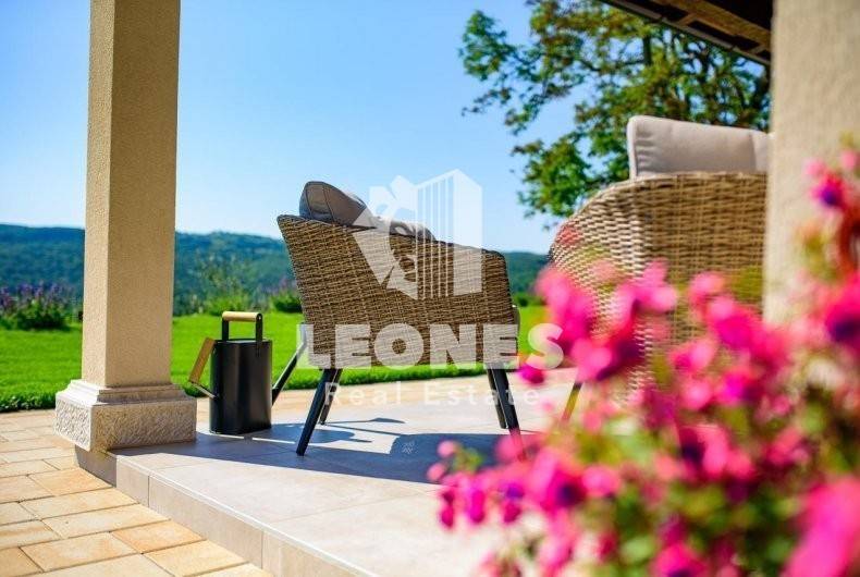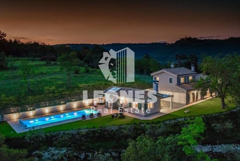 A beautiful luxury villa for sale in the surroundings of Grožnjan with an open view of Motovun and Grožnjan. The villa was built in 2018. with top quality materials and is equipped accordingly.