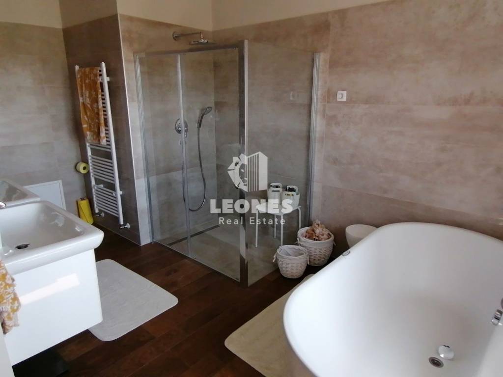 For heating, a central system with a heat pump (ventilcovectors) is installed, which is also connected to solar panels and a wood-burning fireplace, so the house can be heated in several ways, even though the insulation system of 15 cm styrofoam, 60 cm under the roof and three-layer windows allows heating is not even used for most of the year. All bathrooms in both houses have underfloor heating.