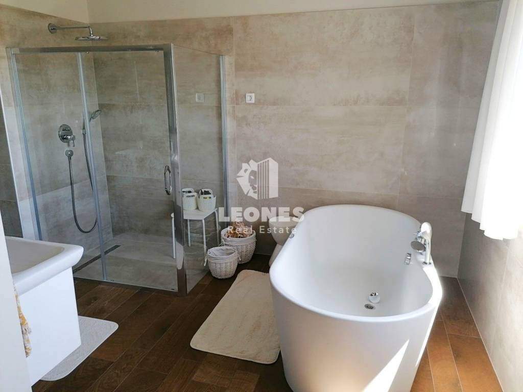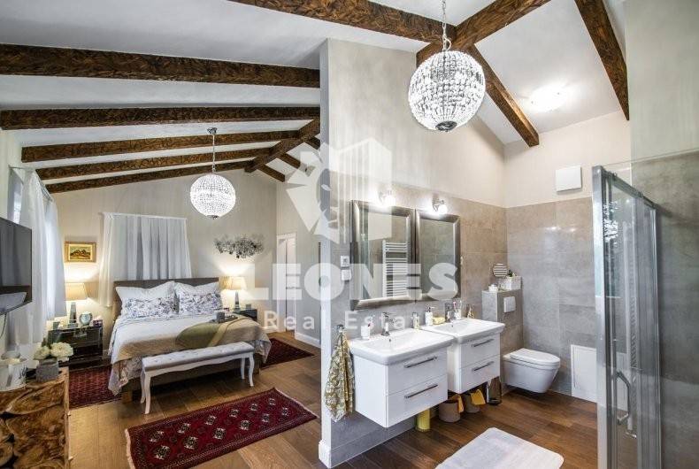 The main building - a house with 3 bedrooms, 3 bathrooms, guest toilet, living room and kitchen, is 150 m2 in size, while the auxiliary building is 50 m2 in size and consists of a living room, bathroom and bedroom, a large swimming pool and is fully equipped (heating And cooling).