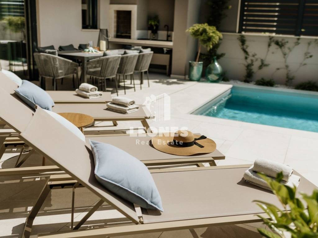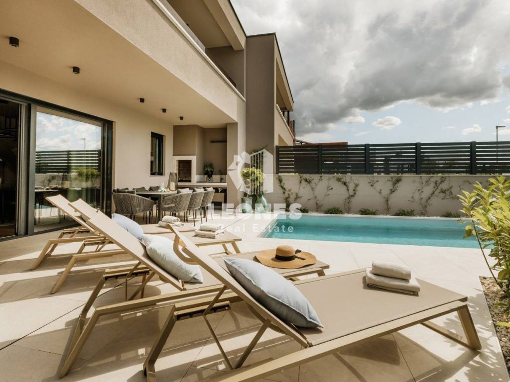 Ta impresivna moderna hiša z bazenom je popolna mešanica elegance, funkcionalnosti in mediteranskega šarma.