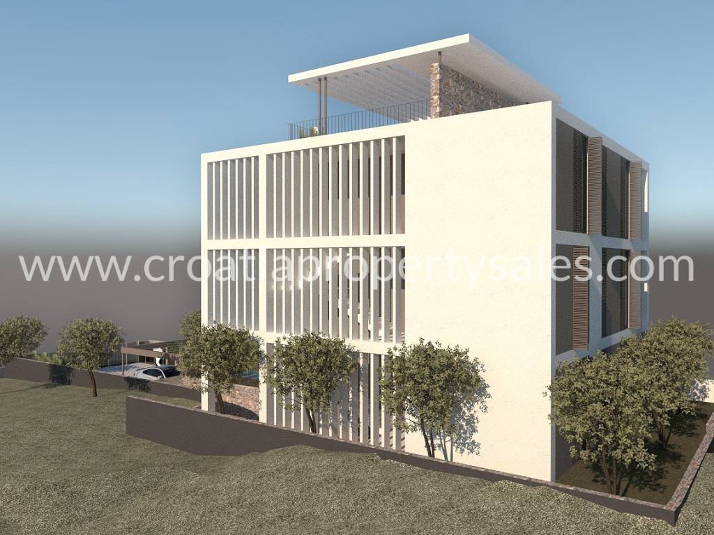 A modern urban villa under construction with three spacious two-bedroom apartments one on each floor. Located in a quiet and attractive part of town, this property offers a high level of comfort, privacy and quality living space. Each apartment has its own covered parking space, and all apartments have spacious terraces. The building was built with an emphasis on contemporary design, functionality and long-term value. S1 Ground floor apartment with swimming pool and gardenTwo-bedroom apartmentArea (calculated): 97.10 m2Price: 580,000 EUR Indoor area: 80.06 m2 Covered terrace: 20.84 m2 (calculated 10.42 m2) Uncovered terrace: 12.94 m2 (calculated 3.24 m2) Covered parking space: 13.5 m2 (calculated 3.38 m2) Heated pool: 16.35 m2 Garden: 68 m2 S2 First floor apartment with large covered terraceTwo-bedroom apartmentArea (calculated): 97.15 m2Price: 390,000 EUR Indoor area: 80.06 m2 Covered terrace: 27.43 m2 (calculated 13.71 m2) Covered parking space: 13.5 m2 (calculated 3.38 m2) Prepared installations for a jacuzzi on the terrace. S3 Penthouse on the second floor with a covered and roof terraceTwo-bedroom apartmentArea (calculated): 117.68 m2Price: EUR 649,000 Indoor area: 89.35 m2 Covered terrace: 16.7 m2 (calculated 8.35 m2) Roof terrace: 64.24 m2 (calculated 16.6 m2) with open views and privacy Covered parking space: 13.5 m2 (calculated 3.35 m2) Prepared installations for a jacuzzi on the roof terrace.
