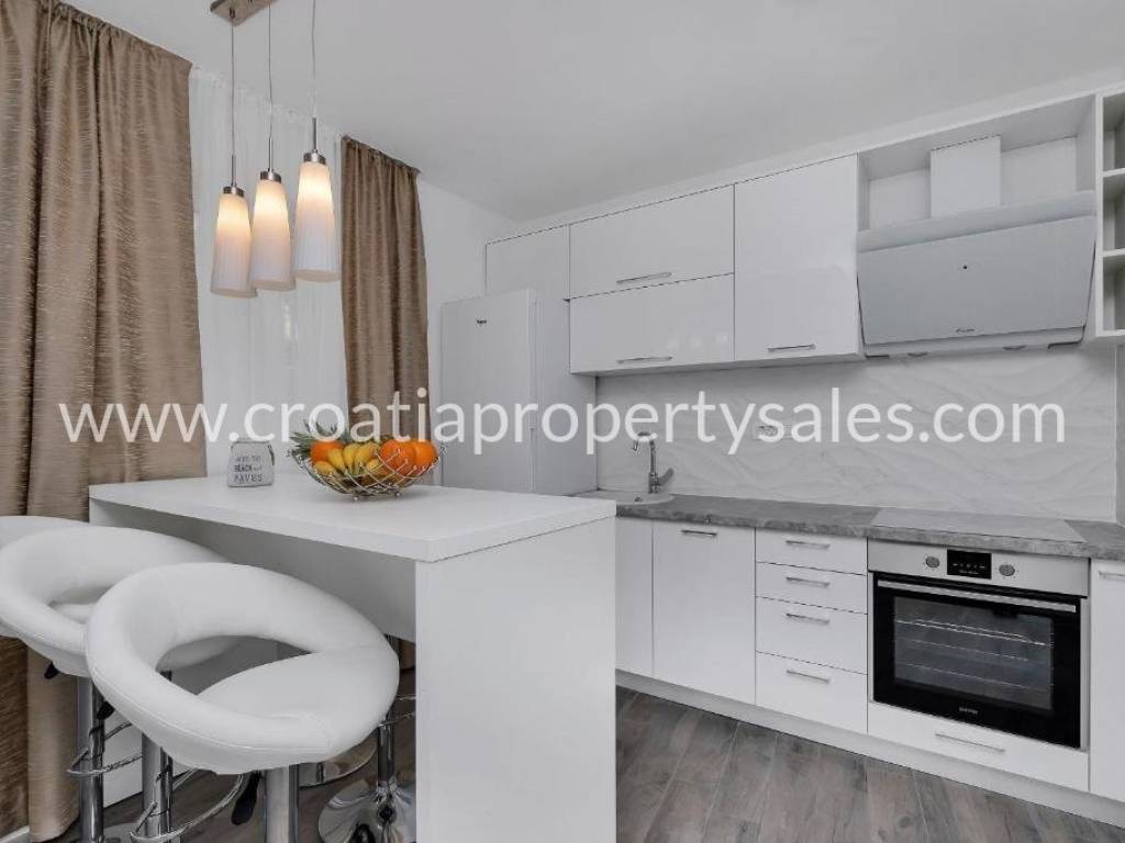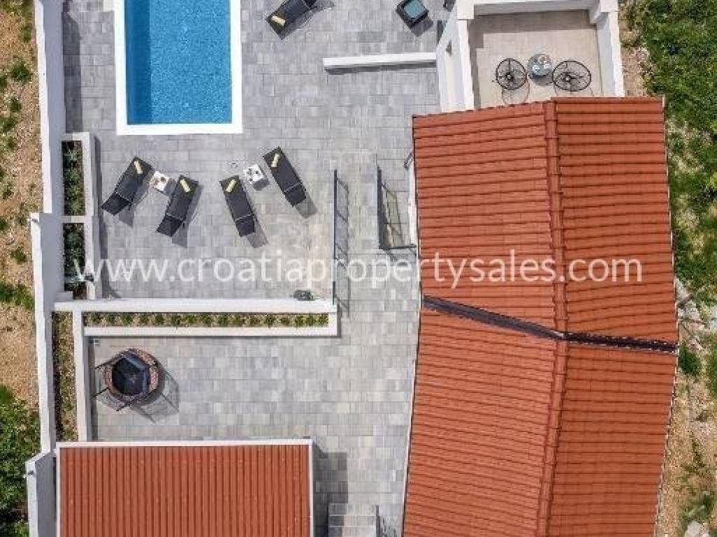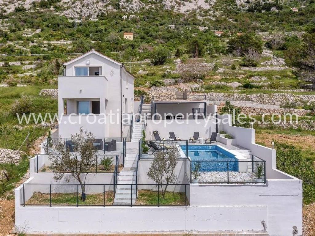 Villa with a swimming pool and panoramic views located in a quiet location ideal for a summer vacation. This exceptional villa is located 350 m from the sea and the beautiful pebble beaches for which the Makarska Riviera is famous. It consists of two bedrooms, 2 bathrooms, a kitchen, a dining room and a living room that have access to a beautiful outdoor terrace with a swimming pool and a summer kitchen. The property is sold fully furnished and equipped and with an established tourist rental that can be an additional source of income for the future user.