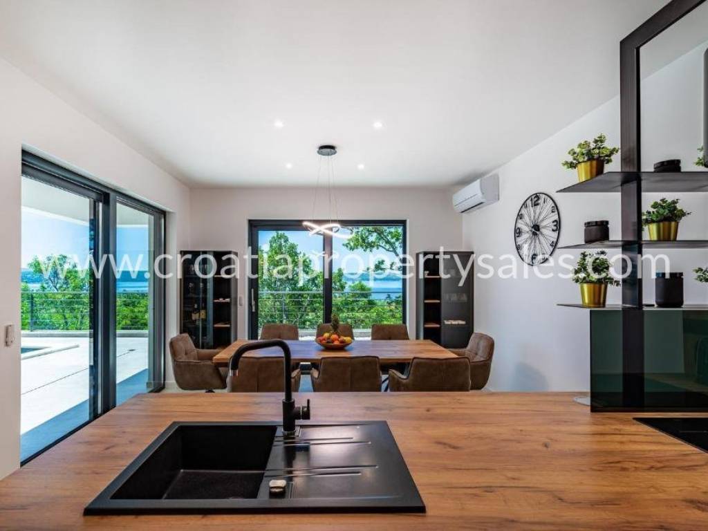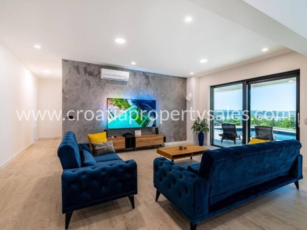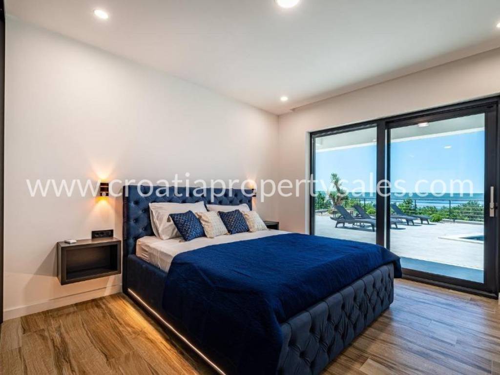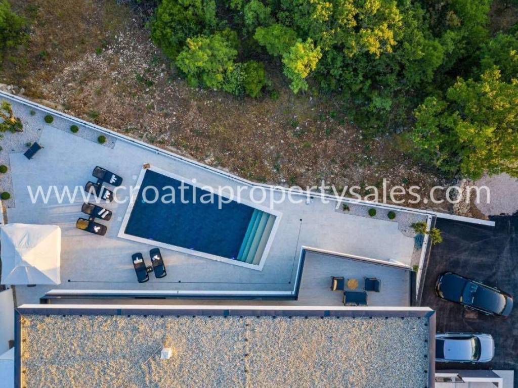 The property is built on two floors, on the ground floor of the villa there is a kitchen and dining room, a living room, an entertainment corner and one bedroom with a bathroom and a small toilet. It has direct access to the swimming pool with sea water, sun deck and outdoor kitchen.