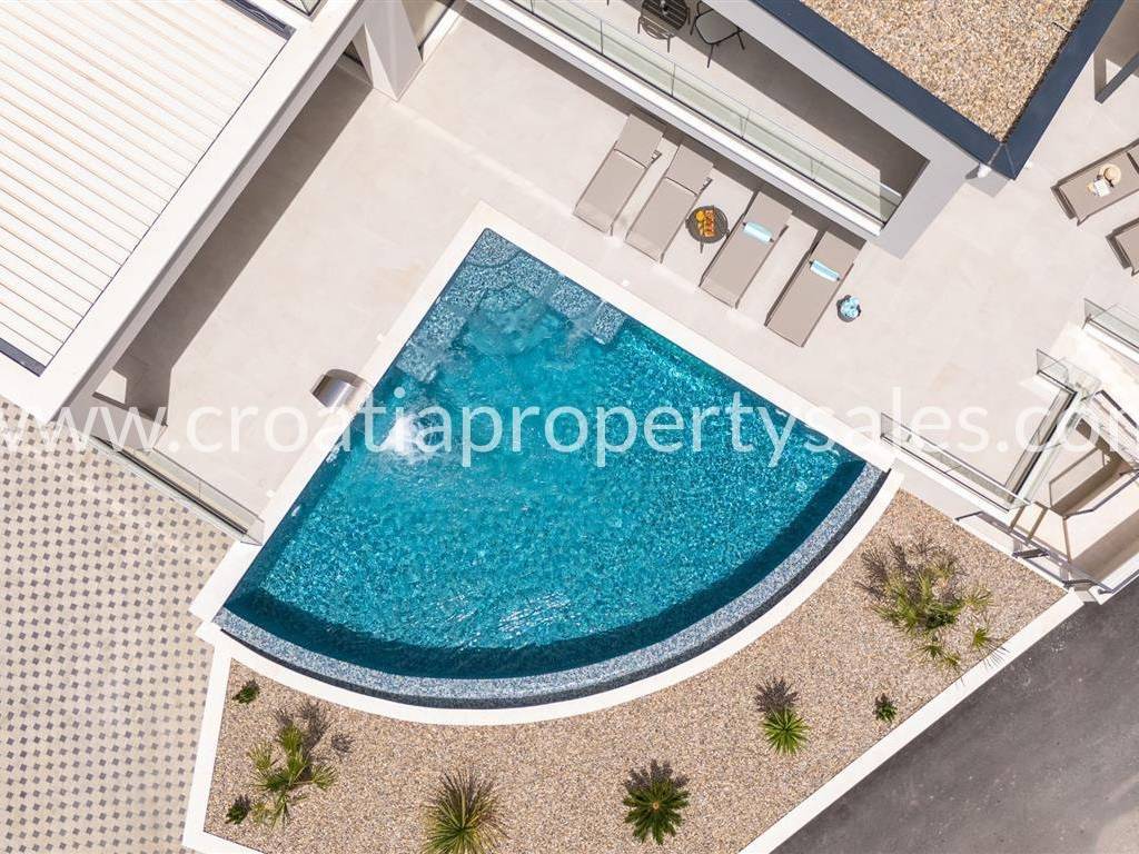 Just a few kilometers south of Split, on a hill with a wonderful view of Split, the islands and the sea, there is this luxurious new building.
