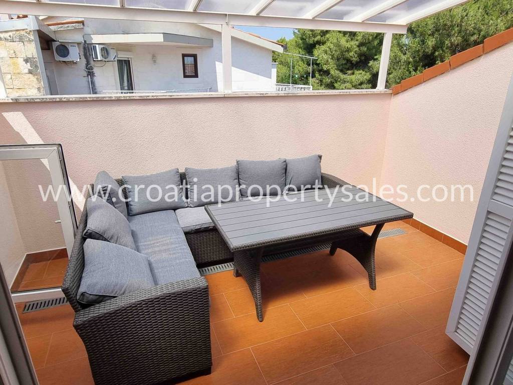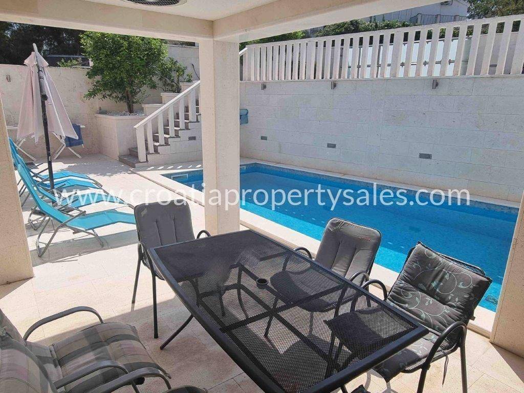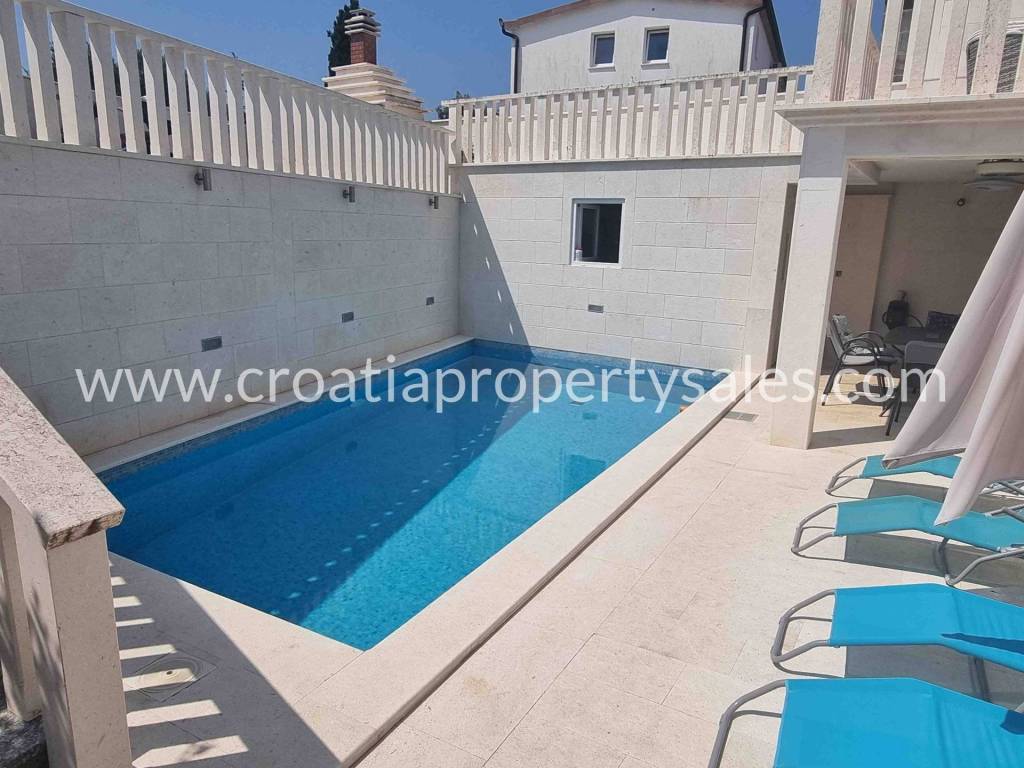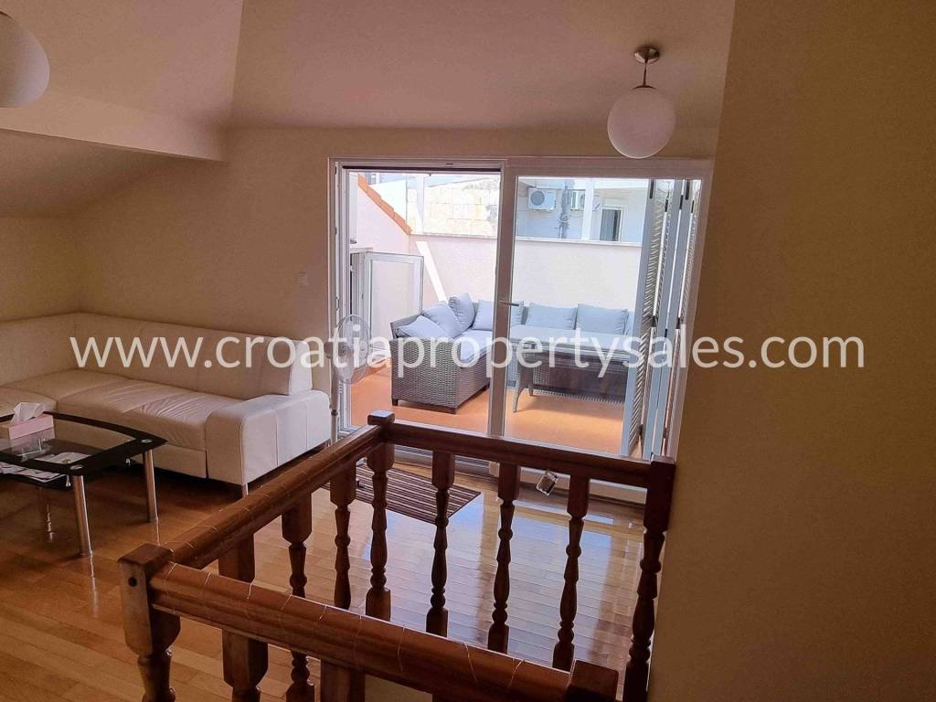 This property is in great condition, it has been maintained regularly and no immediate investment is needed. Although this is a duplex apartment, it has an overall size of a house, because of a lot of outdoor space and a private swimming pool, which offers more comfort and peace.