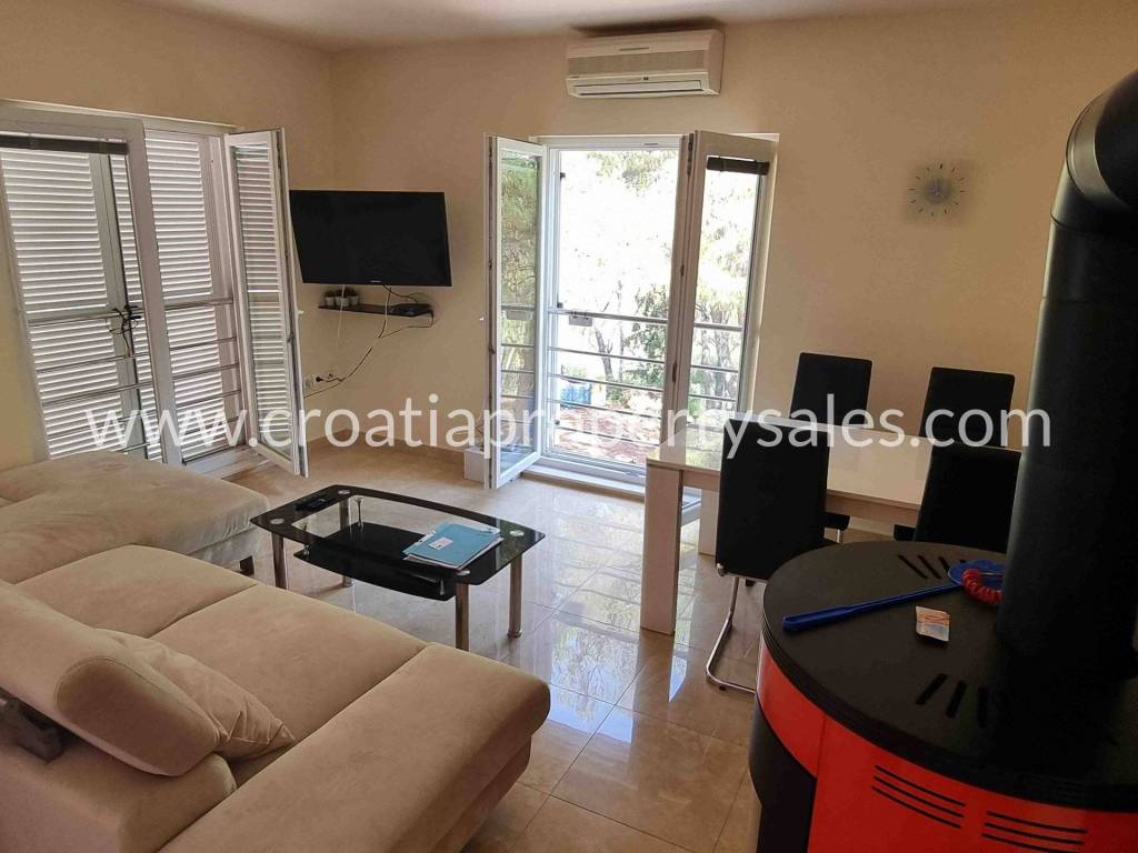 International airport is some 12 km away, while Trogir is 10 min away with a car and has a boat going to Trogir.
