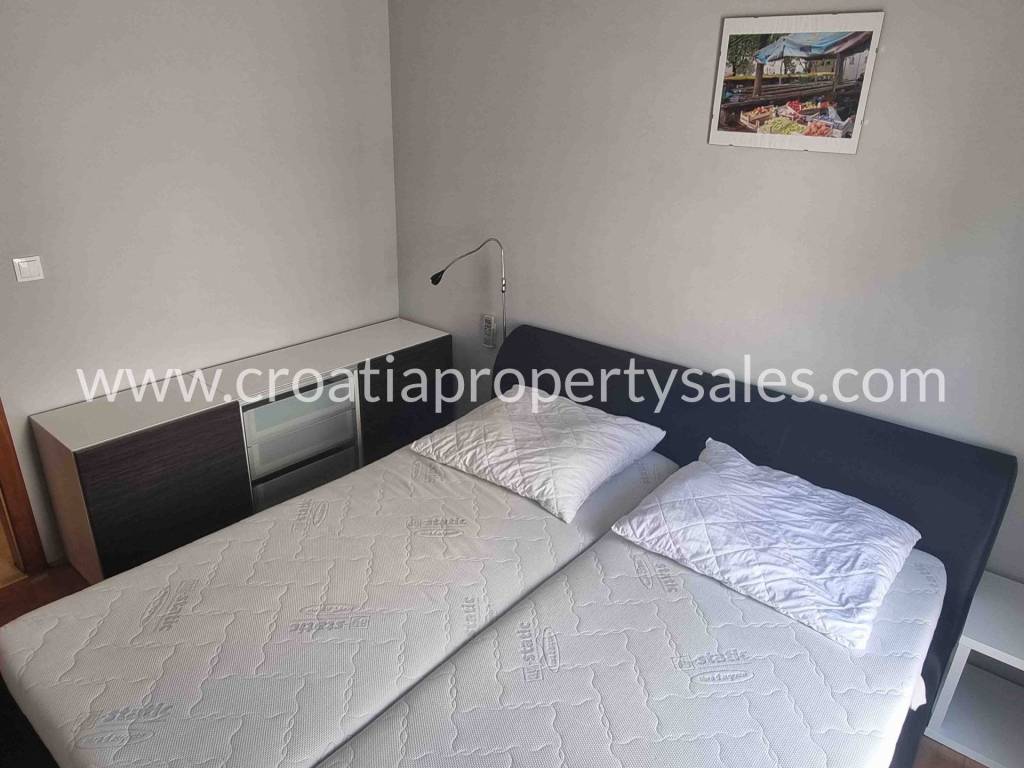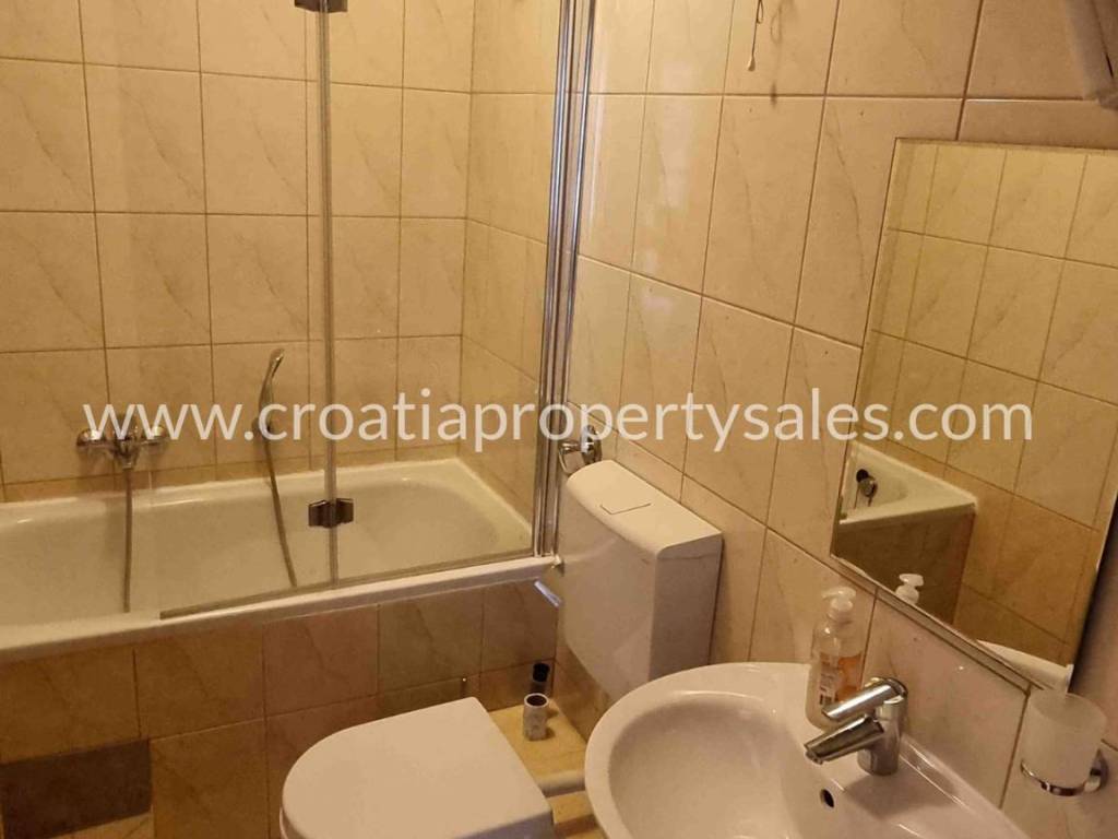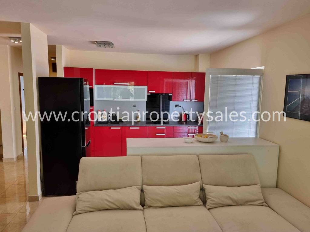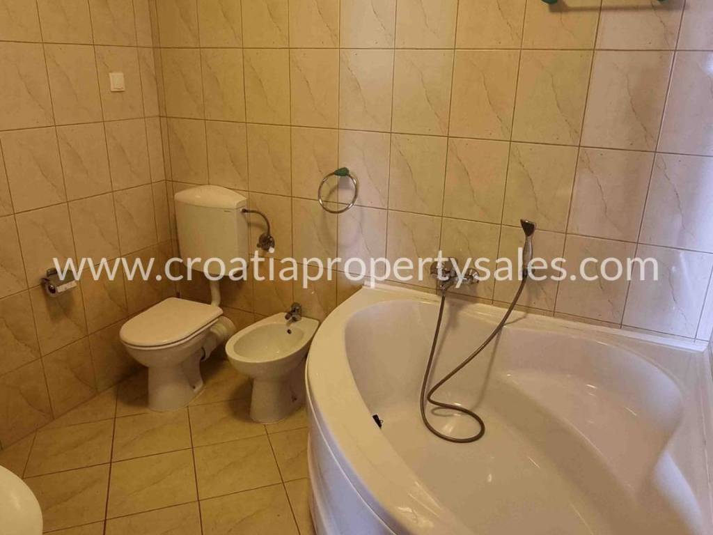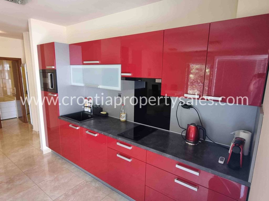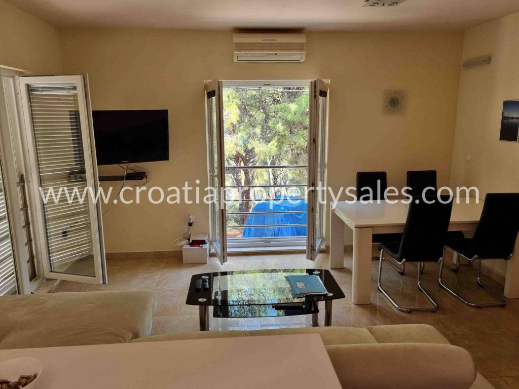 The apartment is located practically in the 1st row to the sea, because in front of the building is a large green area spreading all the way to the sea, with mostly pine trees and it is a protected area, meaning construction is not allowed.
