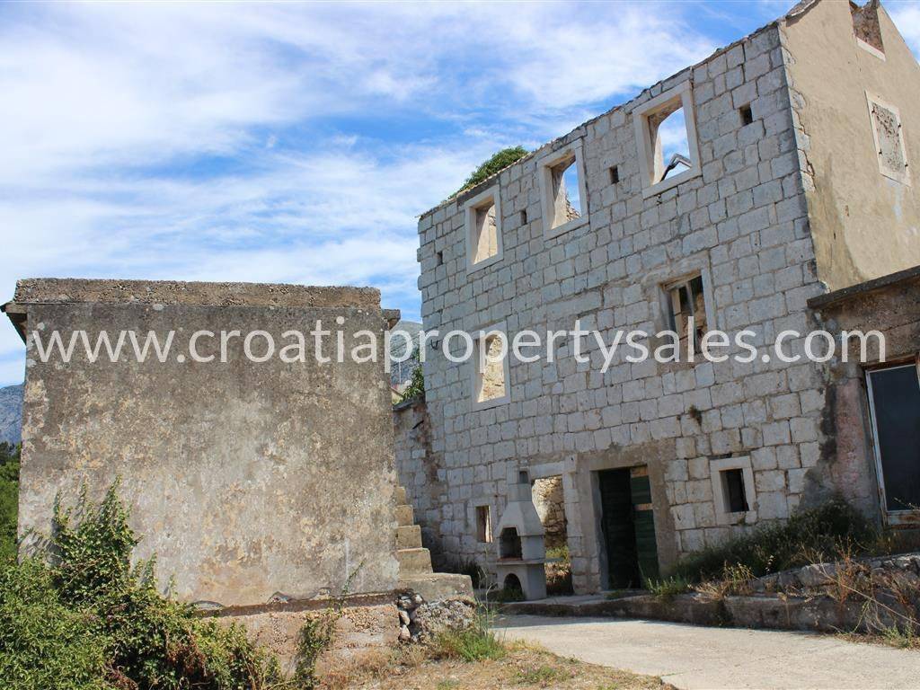 An old stone house located in a picturesque village on the Makarska Riviera. It is a double building with a floor plan area of 60 m2, currently in a dilapidated state. The owners also own an additional house that is located in front of a larger building with an area of 30 m2, which also needs to be renovated or demolished due to the view of the sea and use that space for car parking. The land on which the buildings are located has an area of 422 m2, has access from two sides and can be arranged for a garden or courtyard with accompanying facilities.
