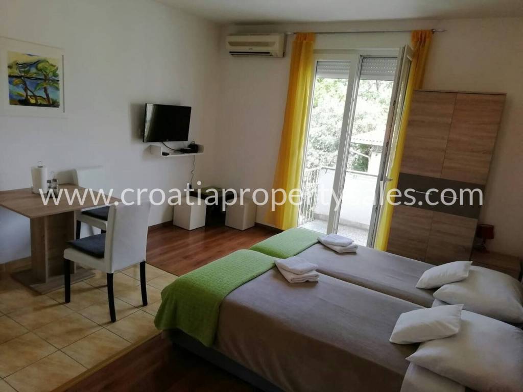 Apartment in the center with a sea view. It has a total of 50 m2 and it is divided into two units, a studio apartment and a room with a toilet. Each unit has a bathroom and a balcony. The apartment is in a nice location near the harbor and Diocletian's Palace. It is oriented to the west. The apartment is a great investment in tourism.