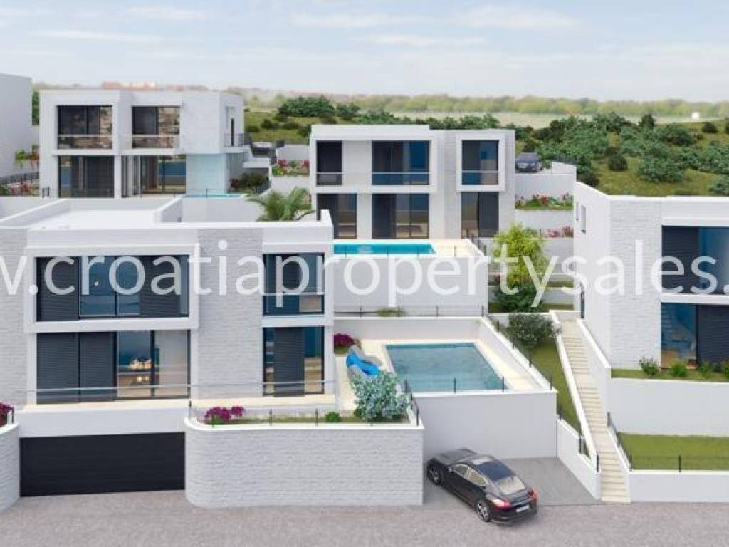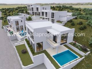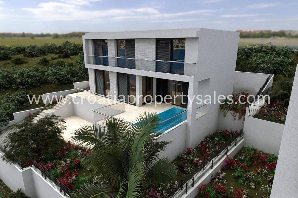 Villa 2 spreads over three floors. The first floor is reserved for a garage for two cars, a technical room and a staircase that allows you to access the villa without leaving the garage.The ground floor consists of a living room with kitchen and dining room, bedroom, bathroom, wardrobe, guest toilet. Enjoying the outdoor area is completed by the pool. The upper floor is reserved for two additional bedrooms and two bathrooms. The living area of villa 2 is 215 m2.