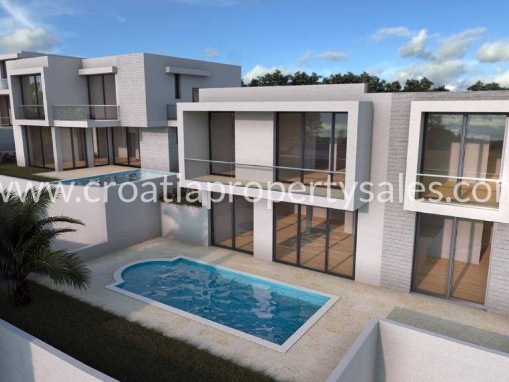 Villa 3 located in the top row of villas. Vila has living area of 183 m2. The living room with dining room and kitchen is located on the ground floor. The outdoor area is adorned with an uncovered terrace of 31 m2 ideal for absorbing the sun's rays during the summer months. The upper floor consists of three bedrooms with bathrooms.