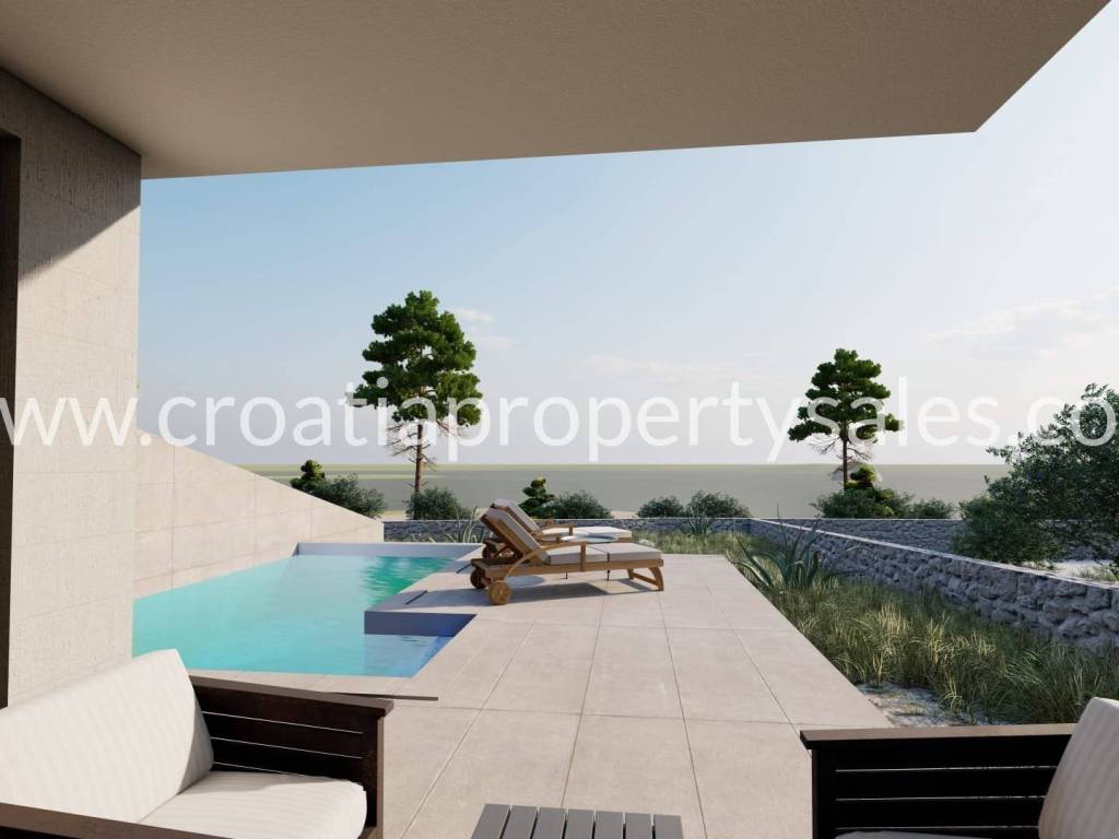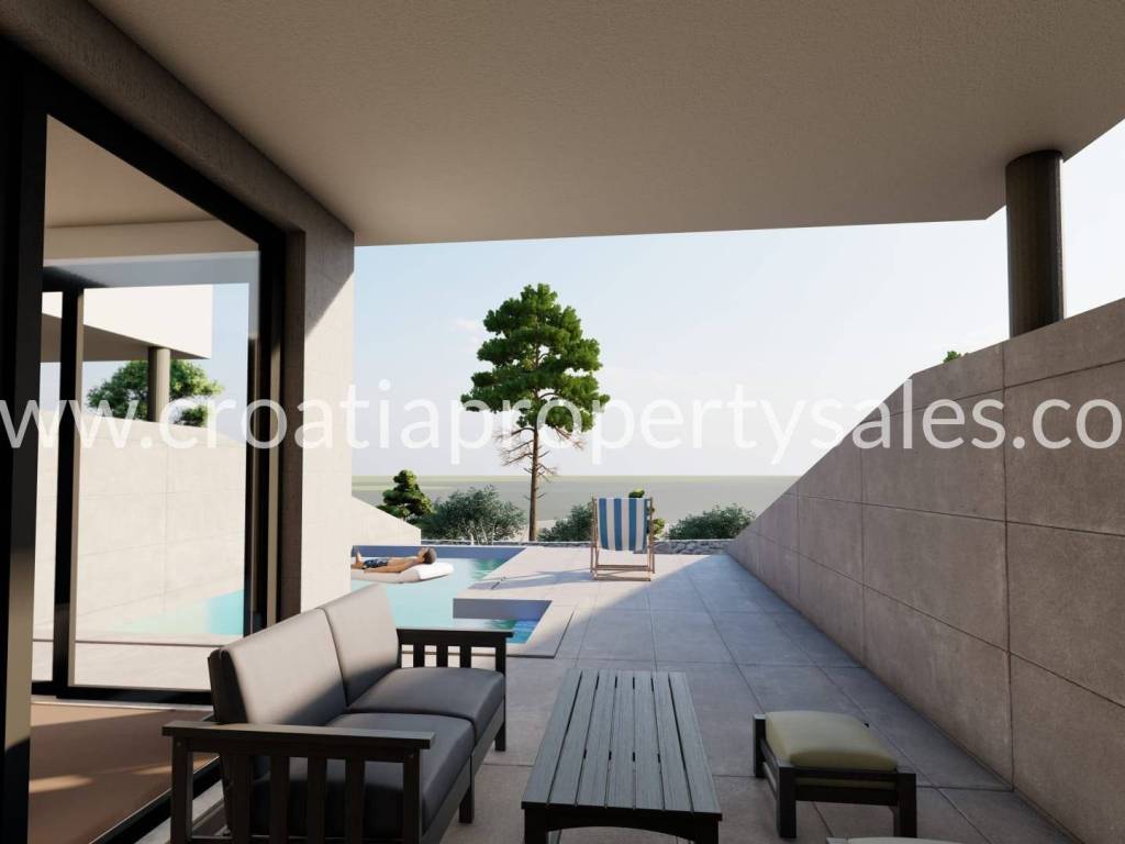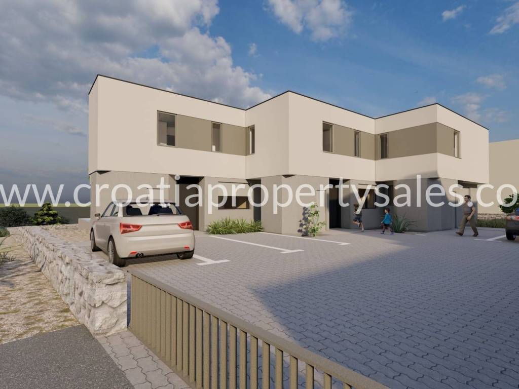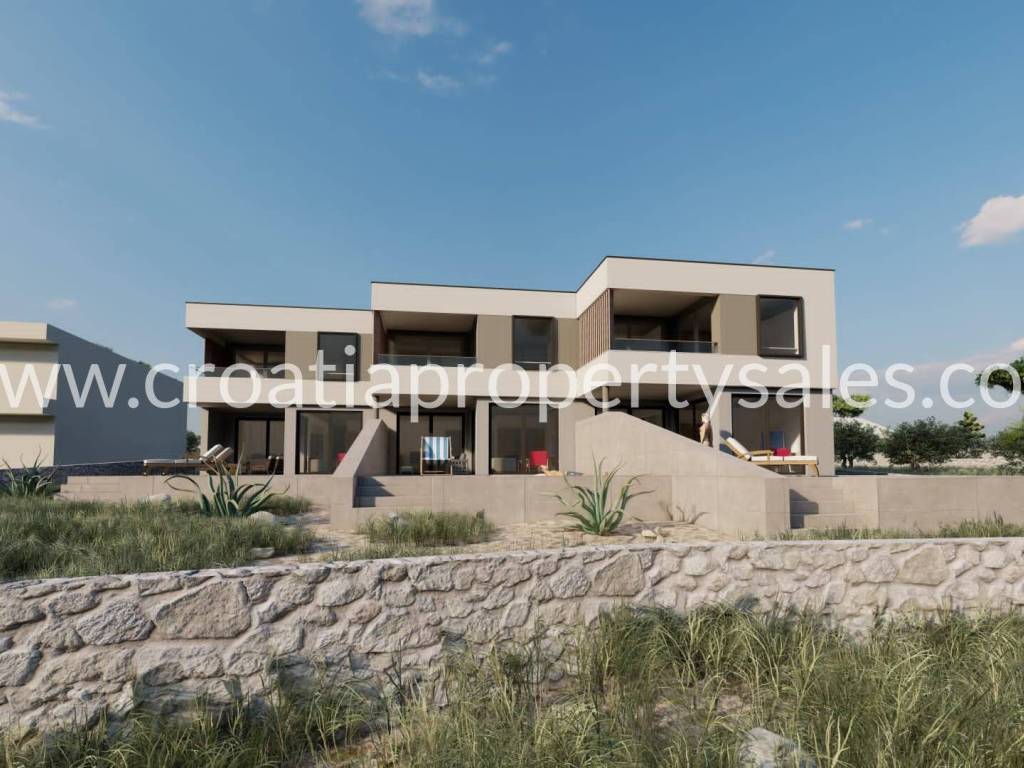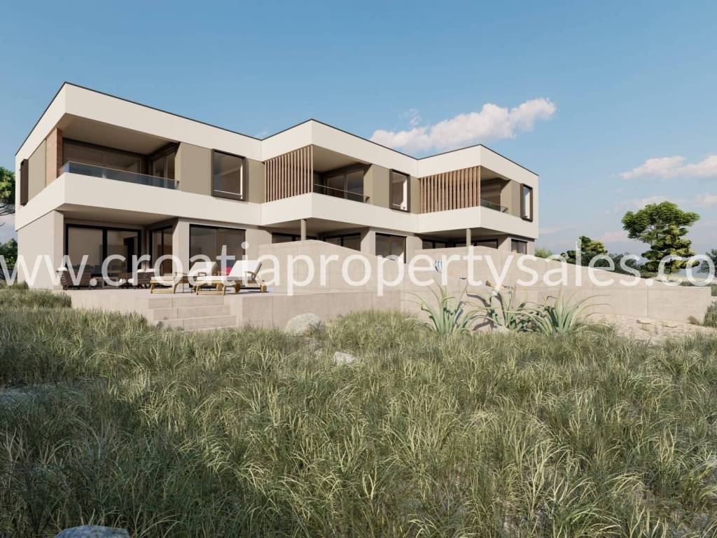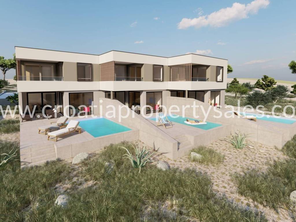 New project! Modern building on a plot of 913 m2. It consists of three residential units i.e. three duplex apartments. Each apartment consists of ground floor and first floor. The ground floor consists of a living room with kitchen, bathroom and study/bedroom and terrace. The upper floor is of two bedrooms and two bathrooms. Each apartment has a swimming pool. The price of the middle apartment is 620,000 euros, while the others are 640,000 euros.