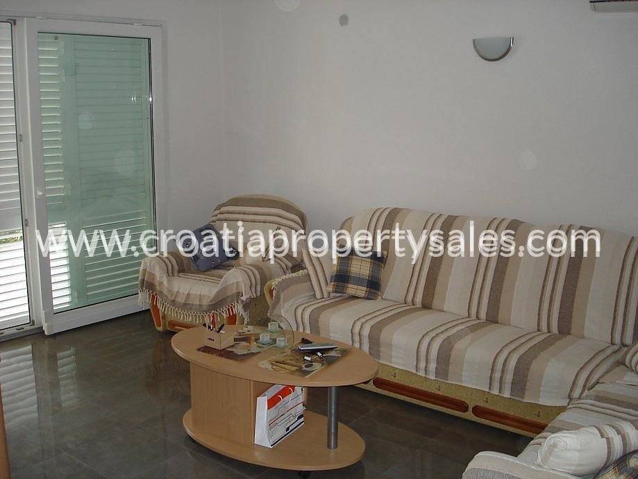 It consists of ground floor (two bedrooms, living room, dining room and kitchen, pantry and two bathrooms, hallway) and first floor where there are 2 separate apartments (each apartment has a kitchen and dining room, bathroom and bedroom, and a balcony).