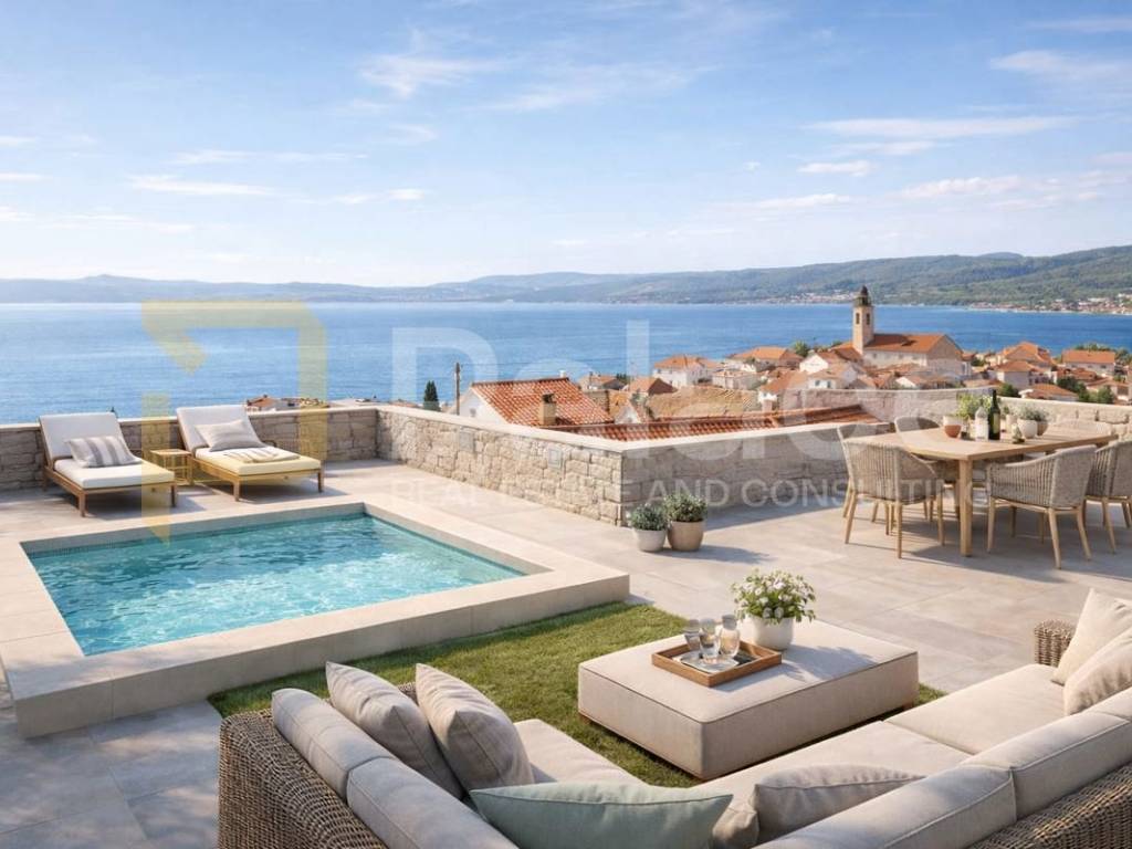The gardens on the rooftop terrace are about 25m2, while the pool is more for decorative purposes and has an area of approximately 10m2.