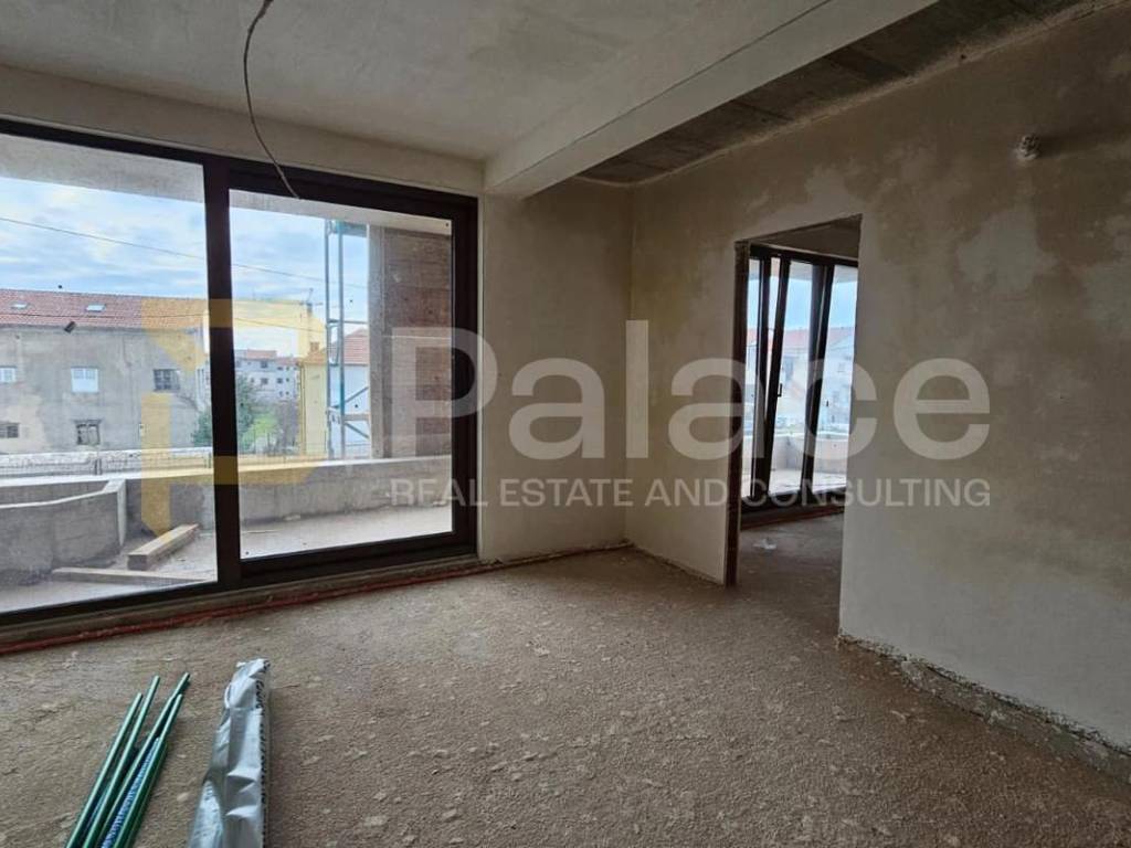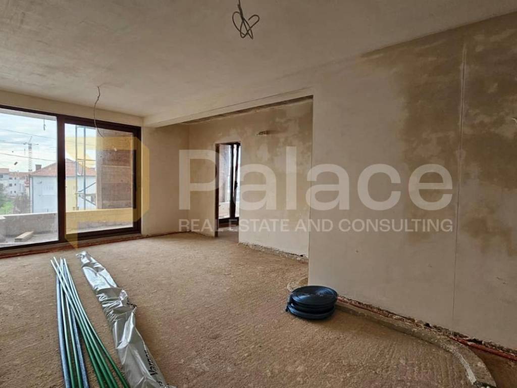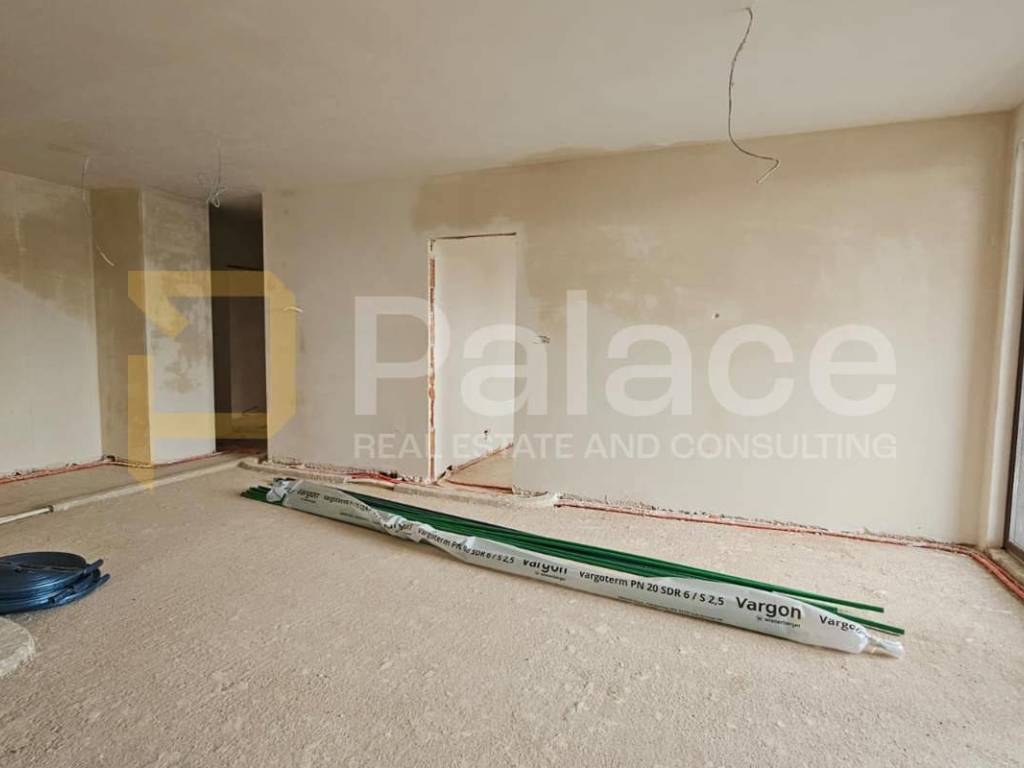 A two-bedroom apartment under construction, with an area of approximately 60m2, located on the first floor of the building under construction.
