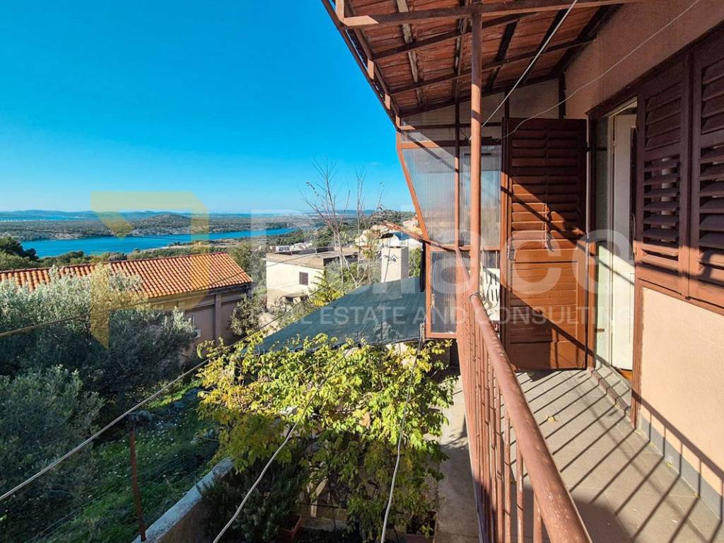 On the first floor, there are two bedrooms, a hallway, and a bathroom, offering a beautiful view of the sea and the Šibenik channel.