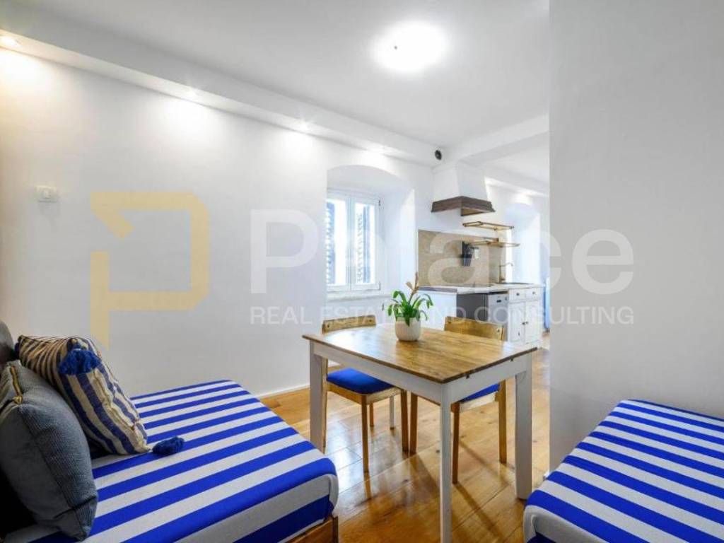 The first and second residential units are each 45m2 in size and consist of a hallway, spacious bedroom, bathroom, and a kitchen with a dining area. Both apartments offer a beautiful view of the sea and the old town. The apartments are currently functioning as holiday rentals and are ideal as an investment, given their established business and excellent reviews.