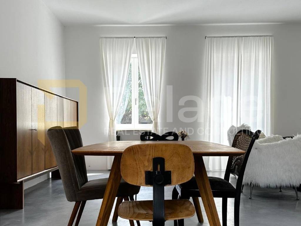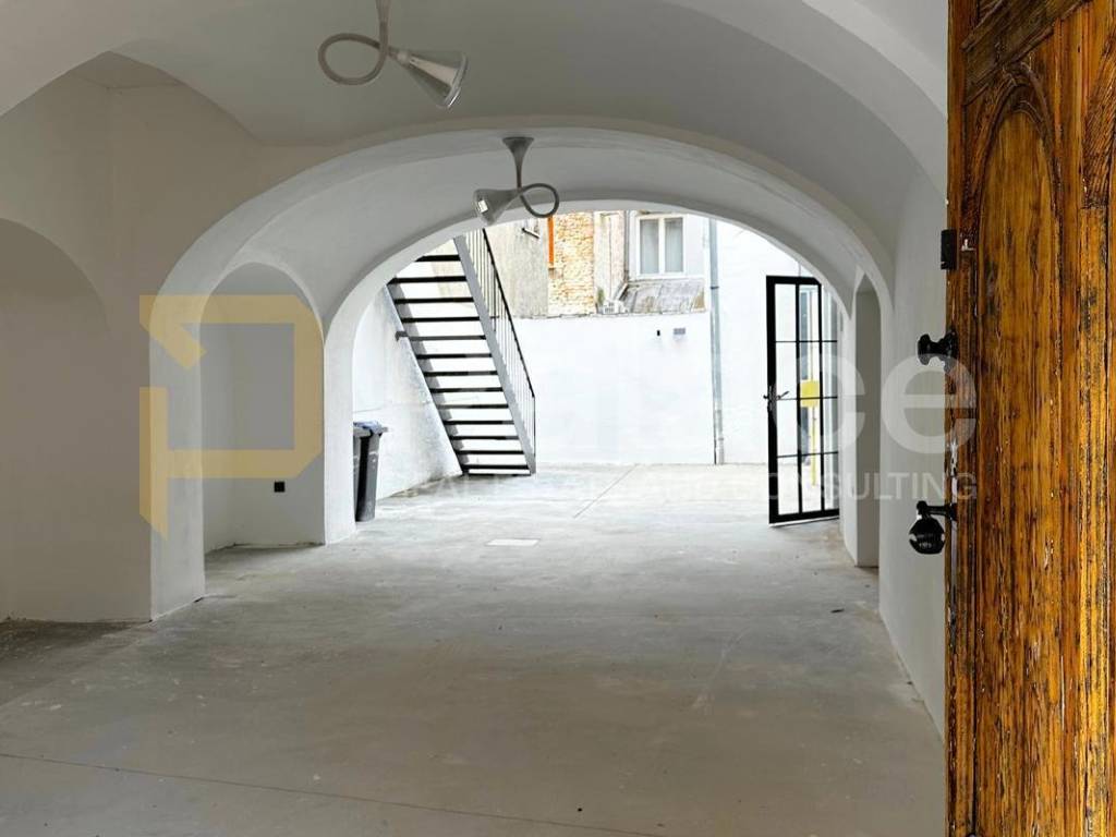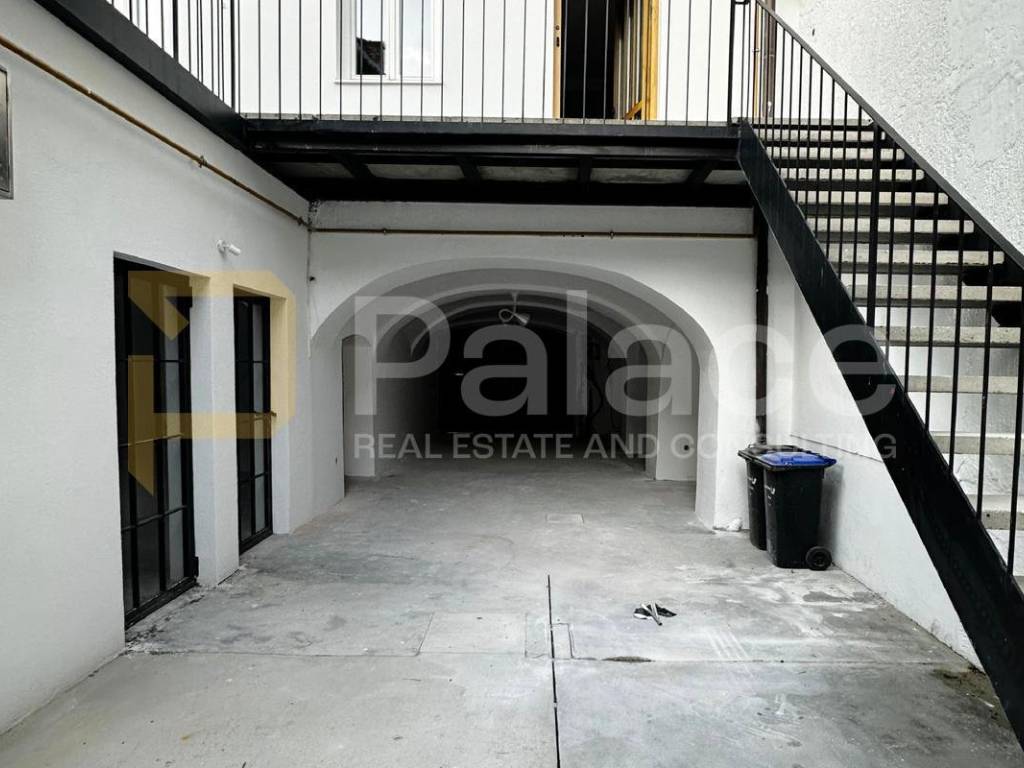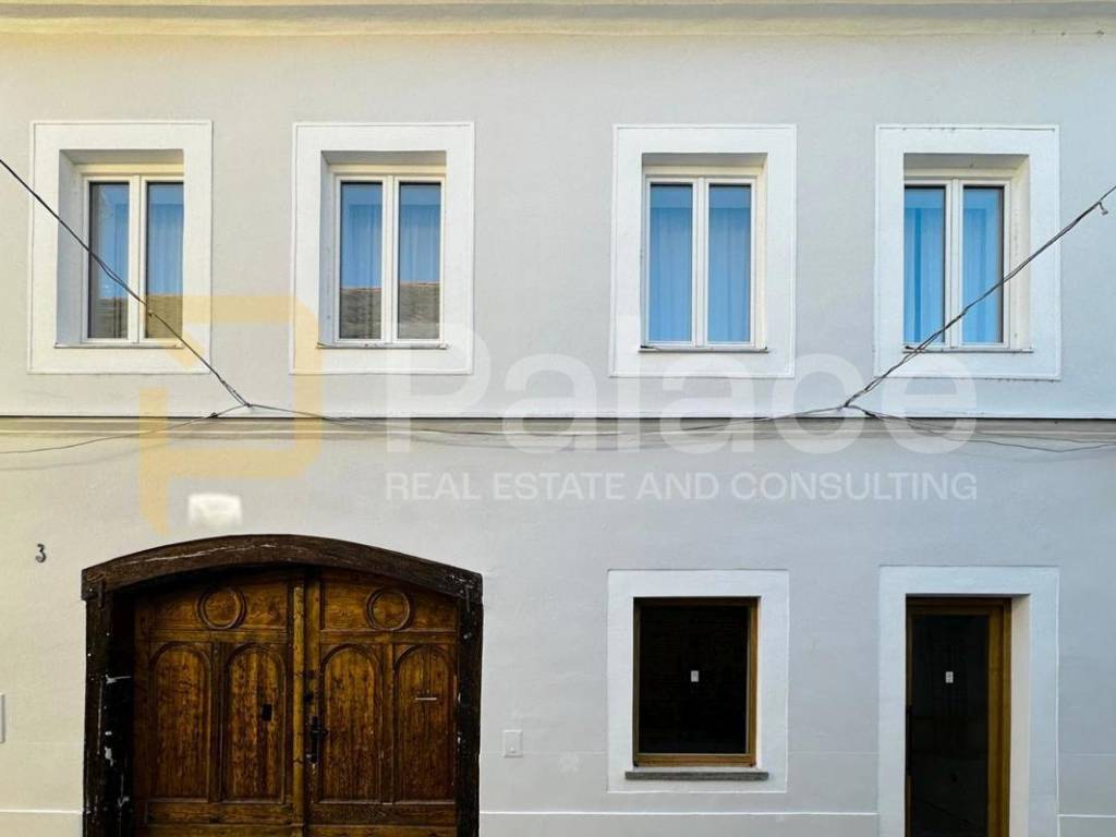 It spreads over three floors: ground floor, first floor, and attic. The ground floor is prepared for catering, retail, or artisan activities with a total area of 109 m2 with the possibility of conversion into residential space, while the first floor and attic, with a total area of 146 m2, are intended for living.