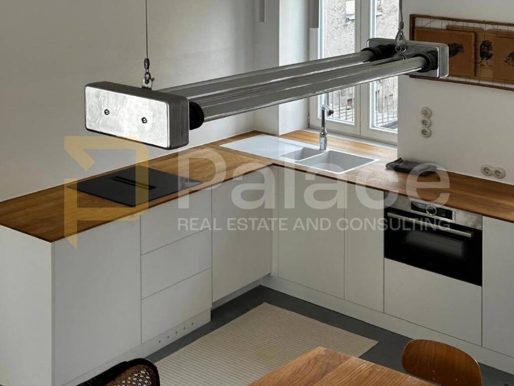 Additionally, the property is furnished with extremely high-quality equipment (custom kitchen equipped with Bosch appliances, Assa Abloy & Yale security system including anti-burglary locks, cameras, and remote control system, smart lighting Philips Hue, and a combination of retro and modern porcelain lamps) and high-quality stylish furniture imported from Belgium, Germany, and the Netherlands.