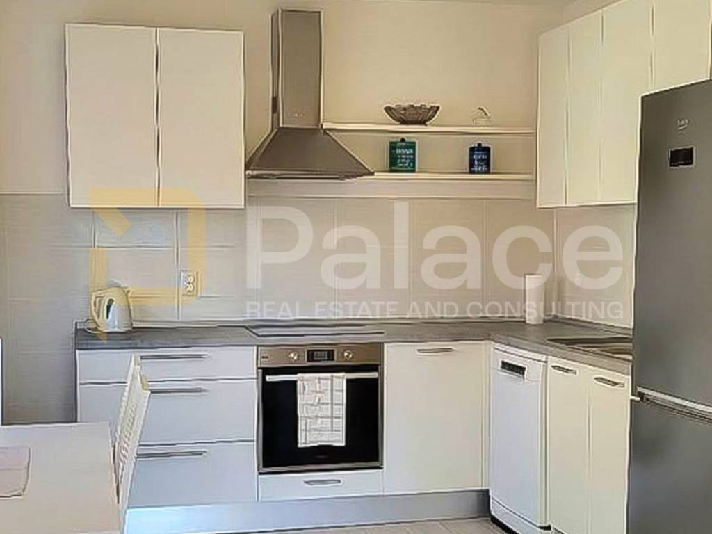 The apartment consists of a spacious living room, a kitchen with a dining table, one bedroom, a bathroom, and a closed balcony that provides additional space for relaxation or work. It is equipped with all necessary furniture and ready for move-in.